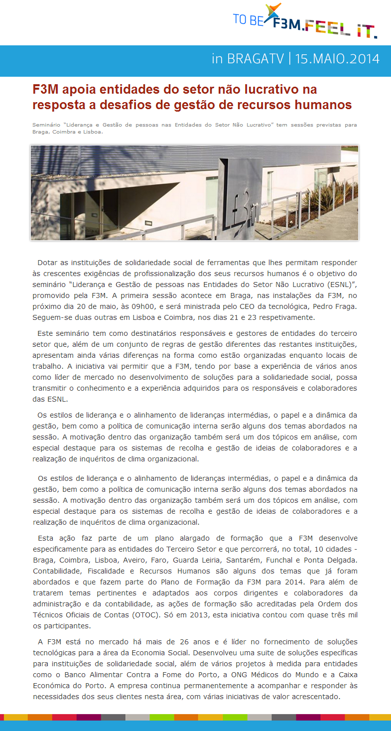 F3M apoia entidades do setor não lucrativo na resposta a desafios de gestão de recursos humanos (MAI2014)