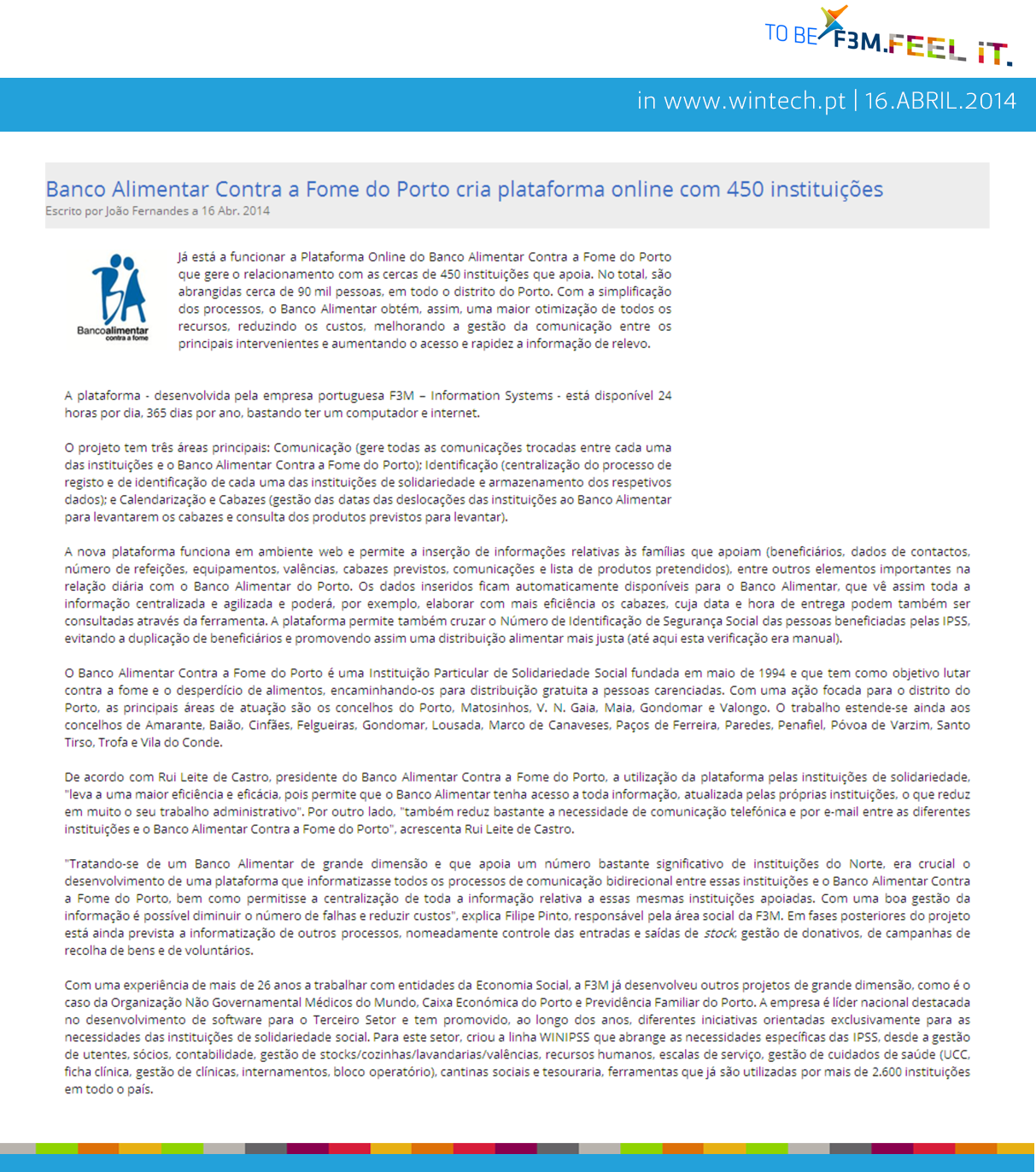 Banco Alimentar do Porto cria plataforma para evitar fraudes (ABR2014)