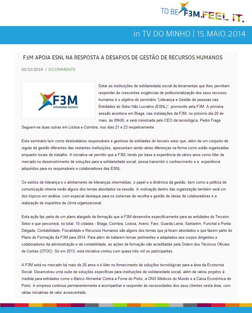 F3M apoia ESNL na resposta a desafios de gestão de recursos humanos (MAI2014)