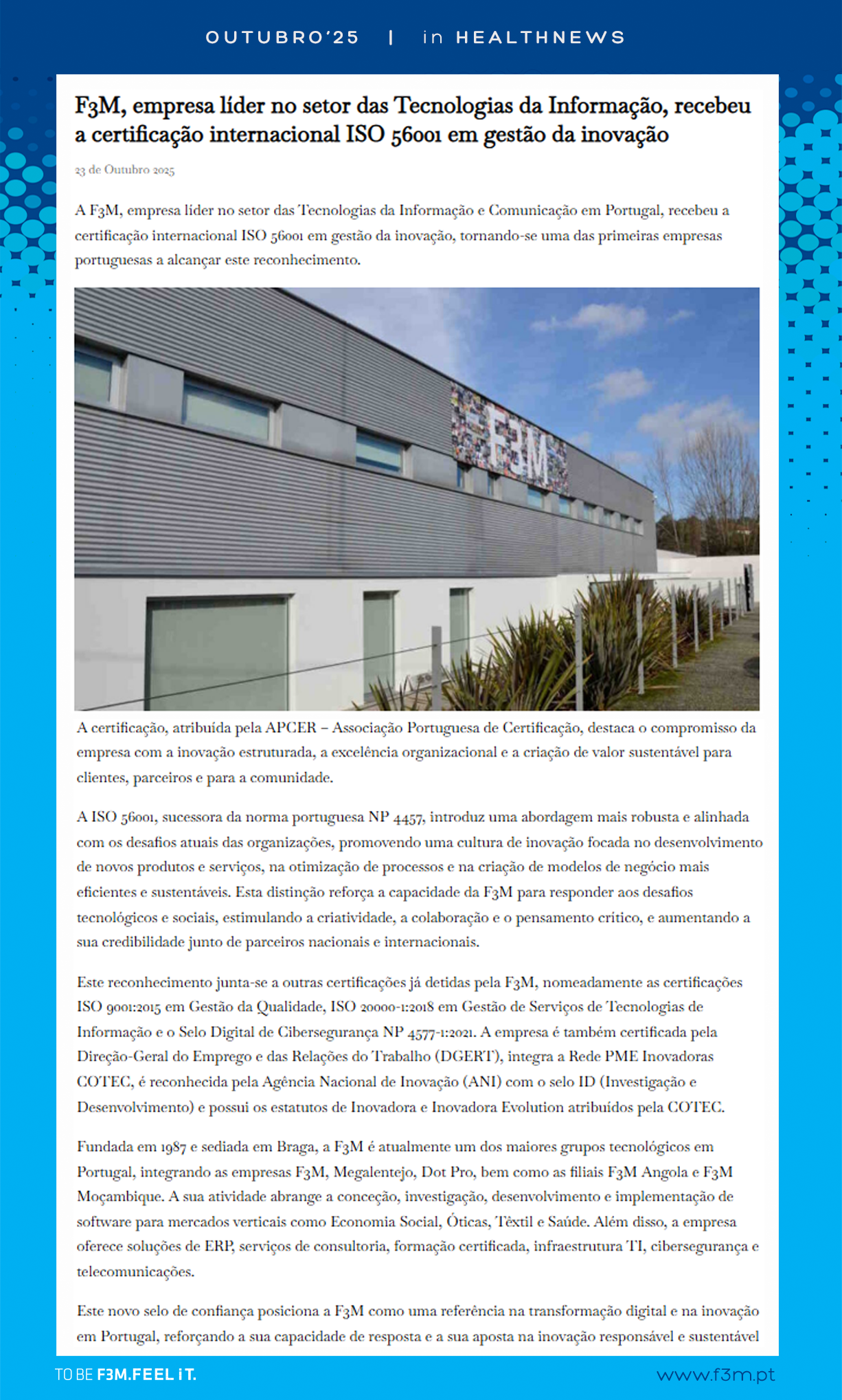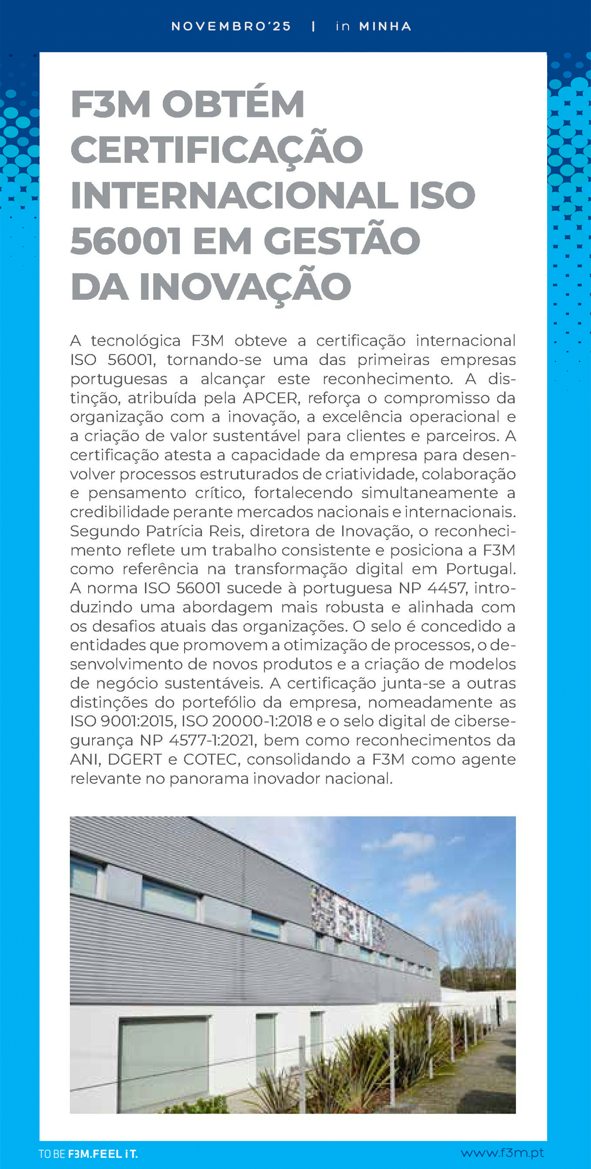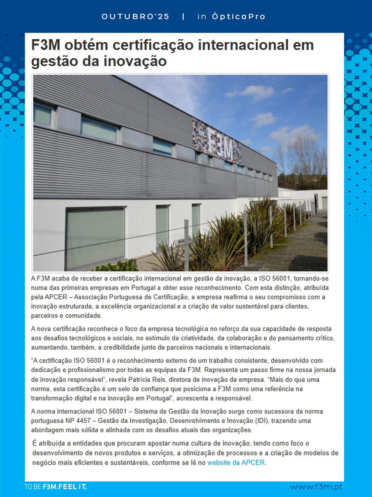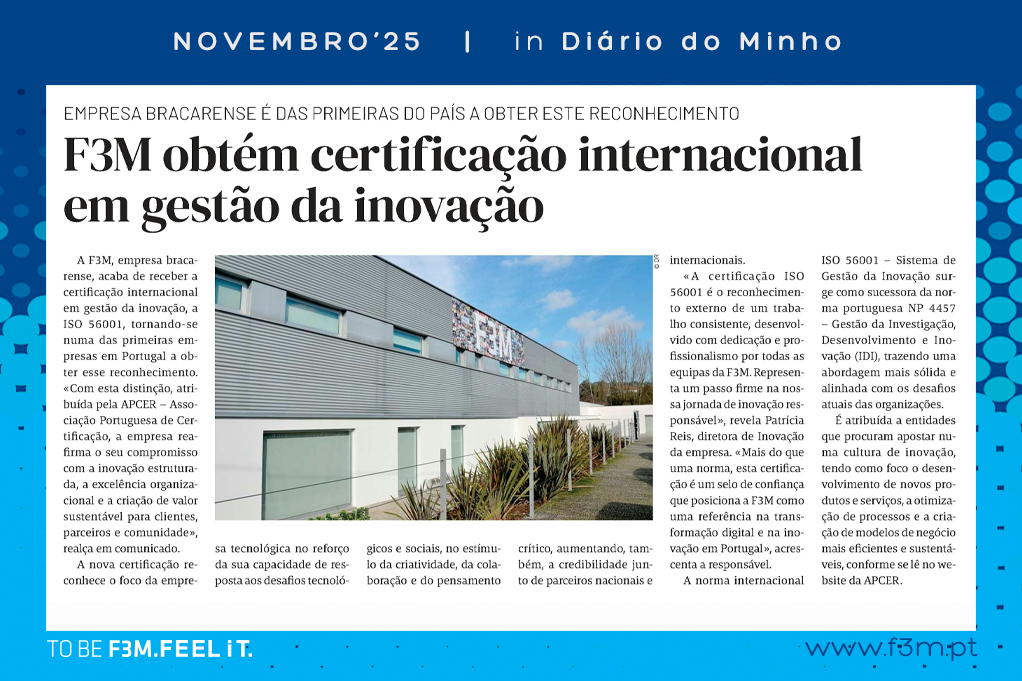 Braga: F3M recebe certificação internacional em gestão da inovação