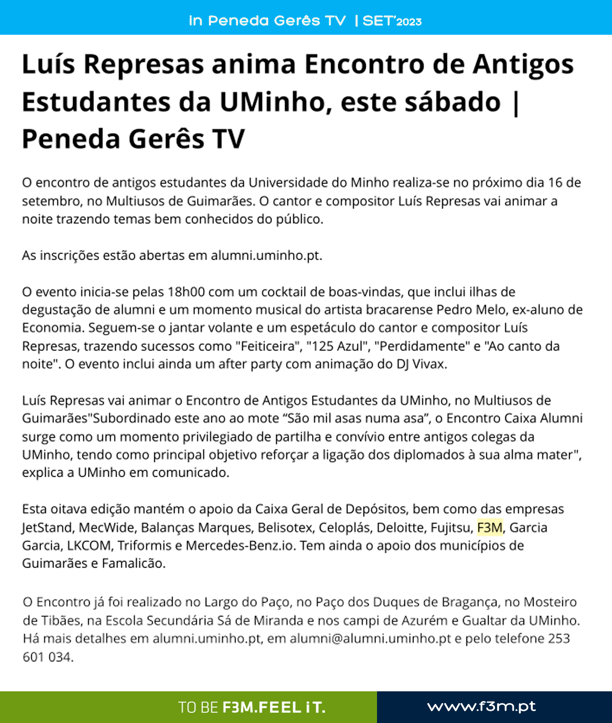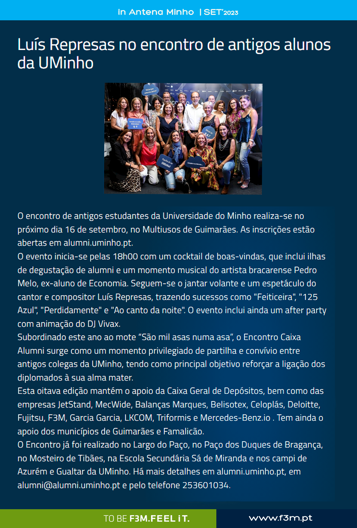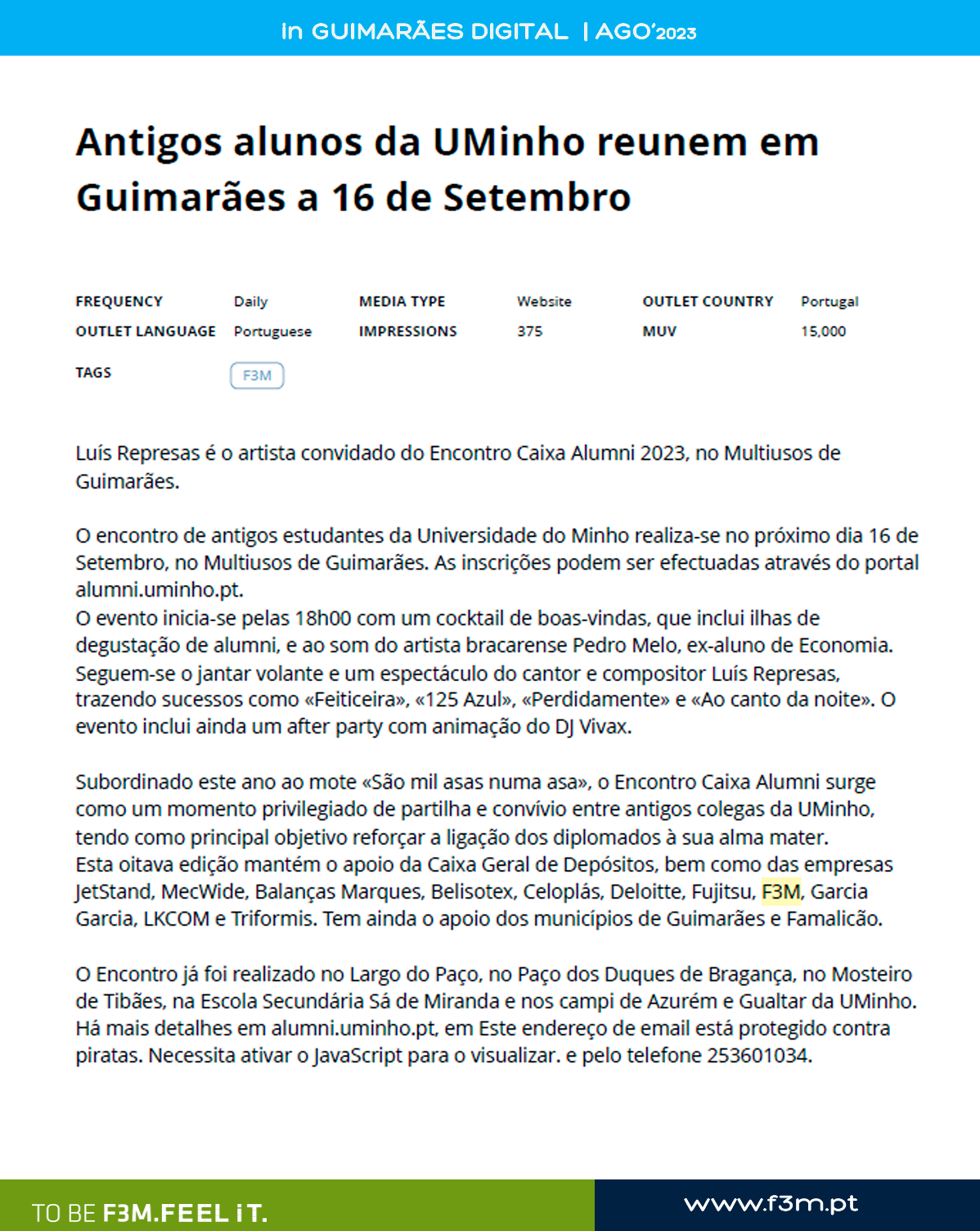 Antigos alunos da UMinho reúnem em Guimarães a 16 de Setembro (AGO'2023)