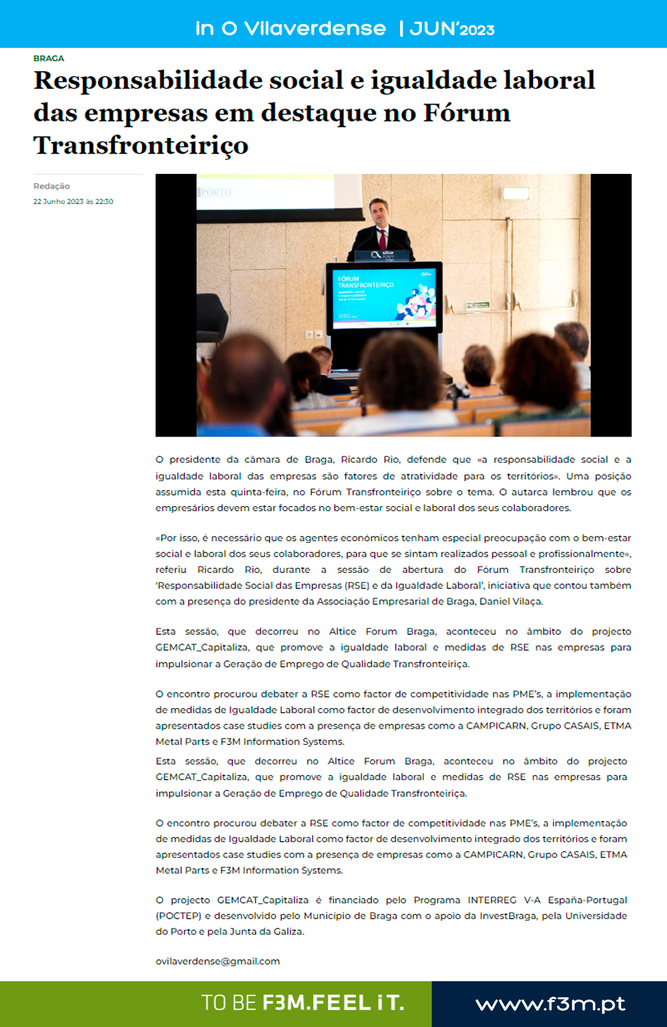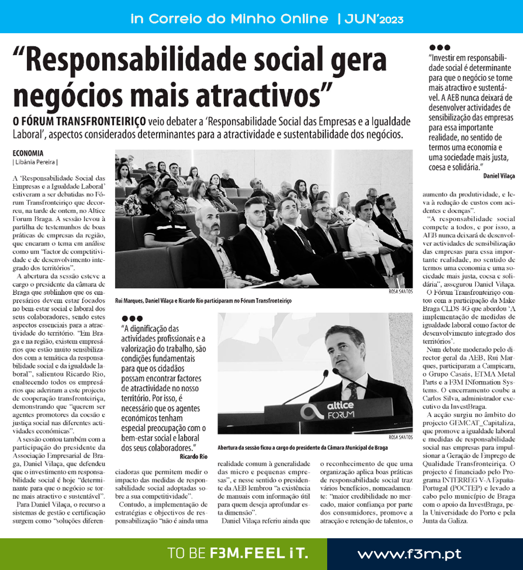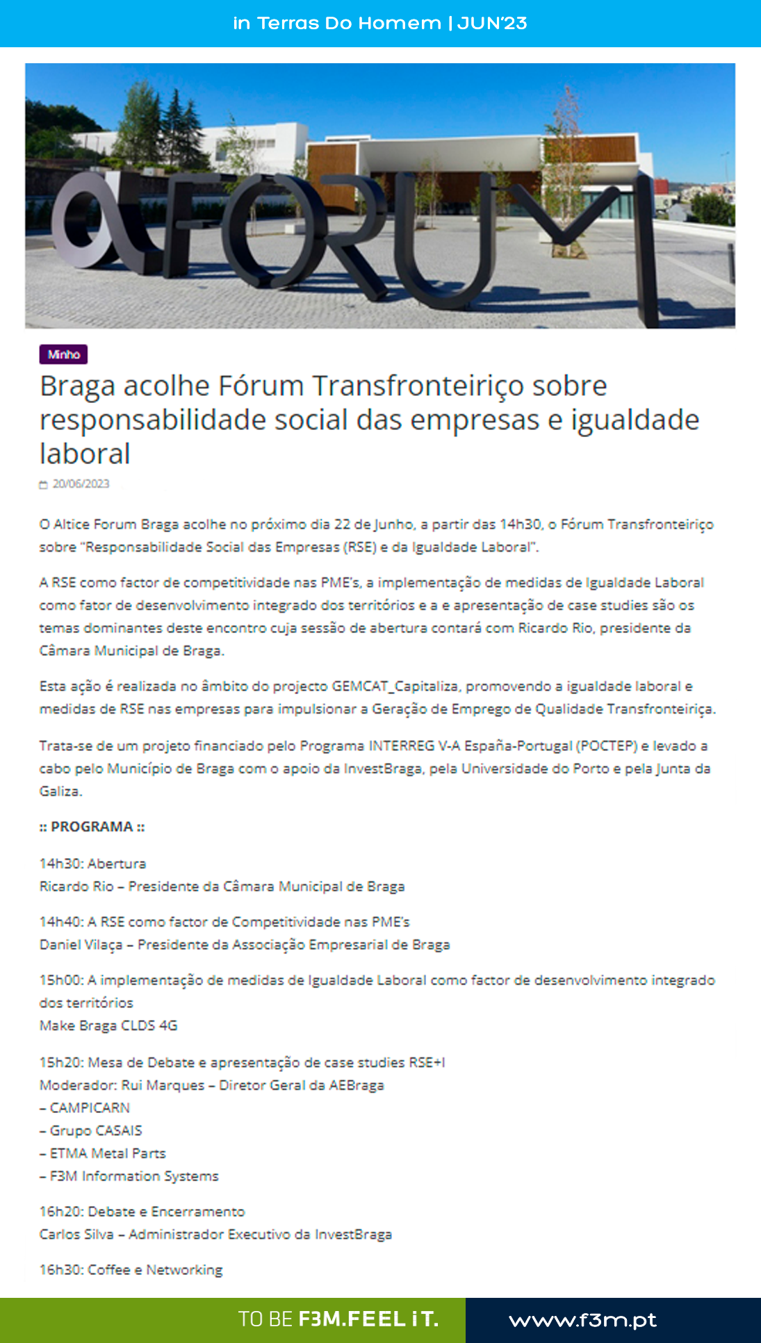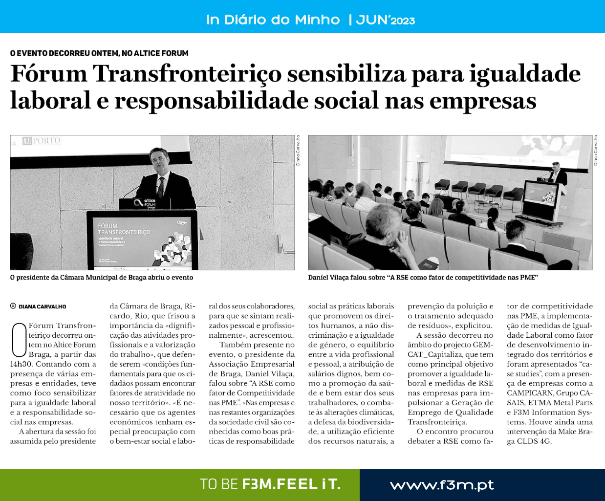 Braga: Fórum Transfronteiriço demonstra Responsabilidade Social e Igualdade Laboral das Empresas (JUN'2023)
