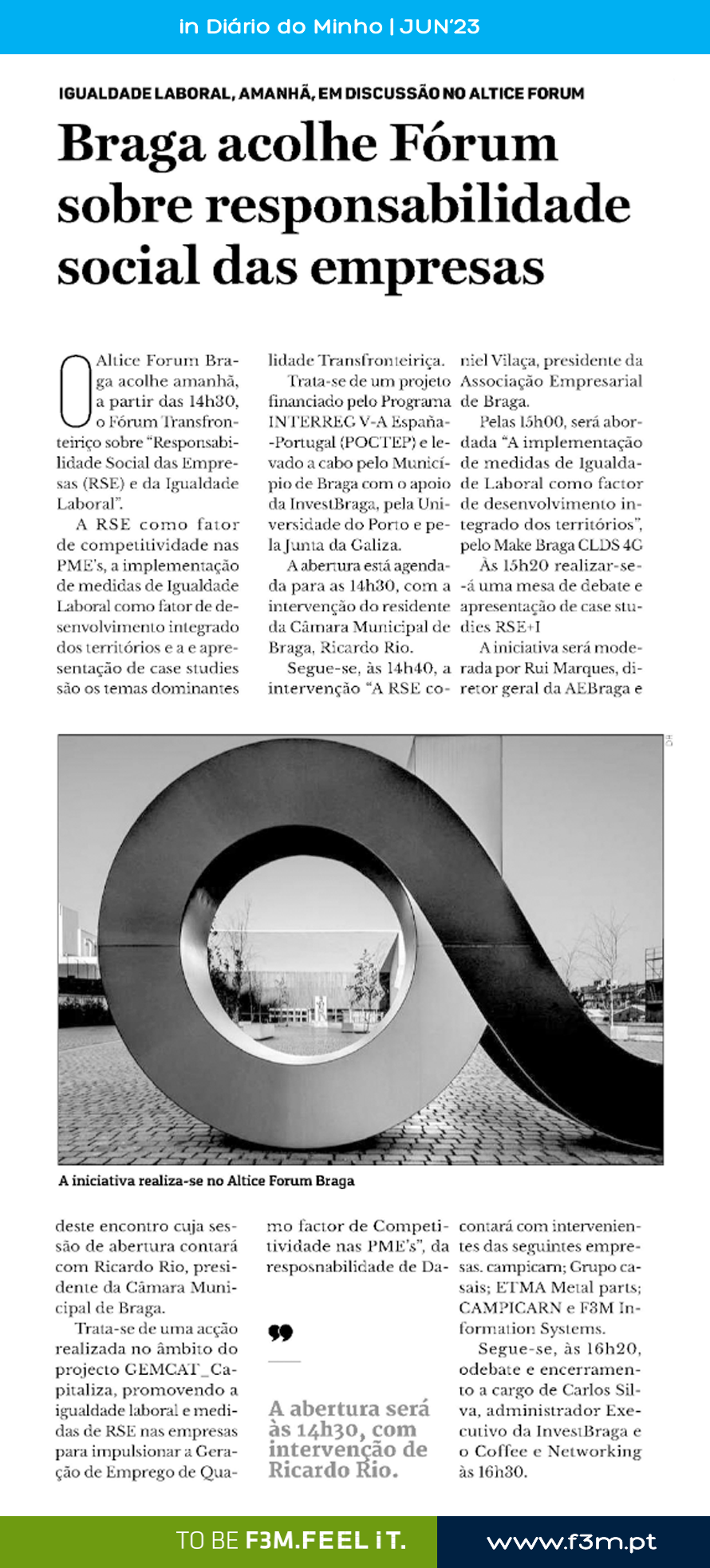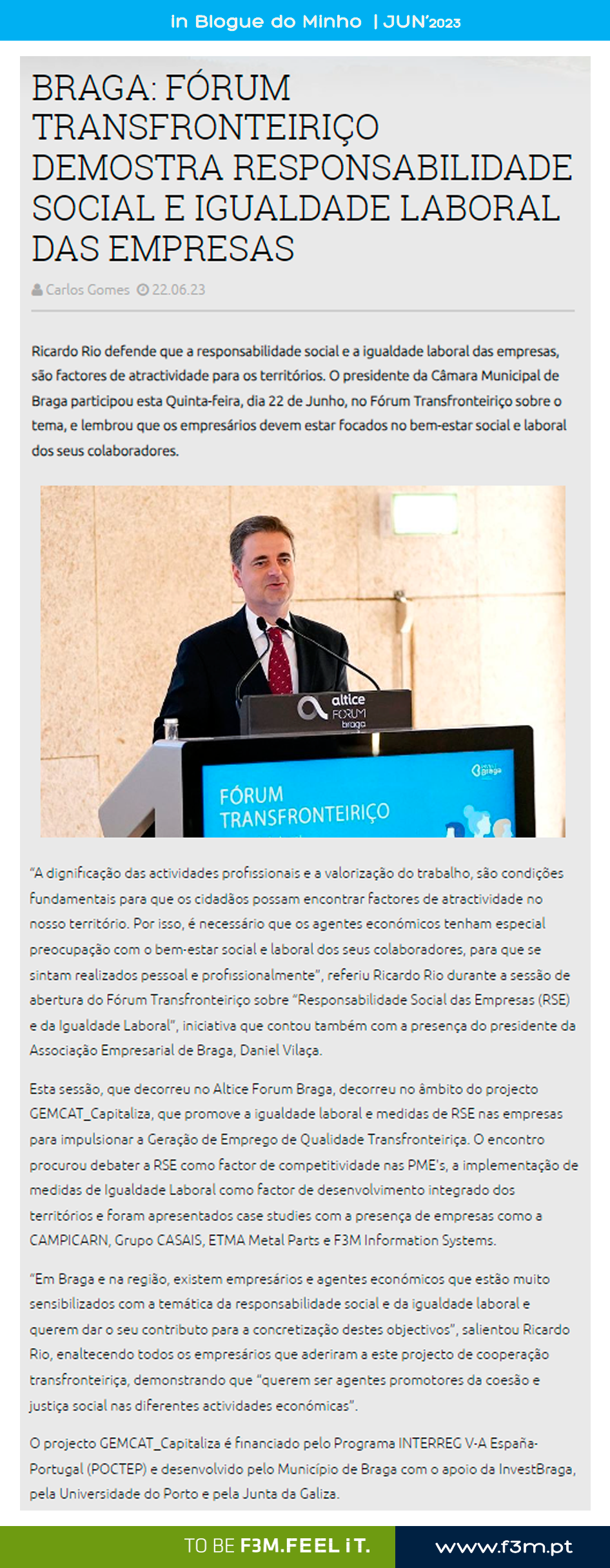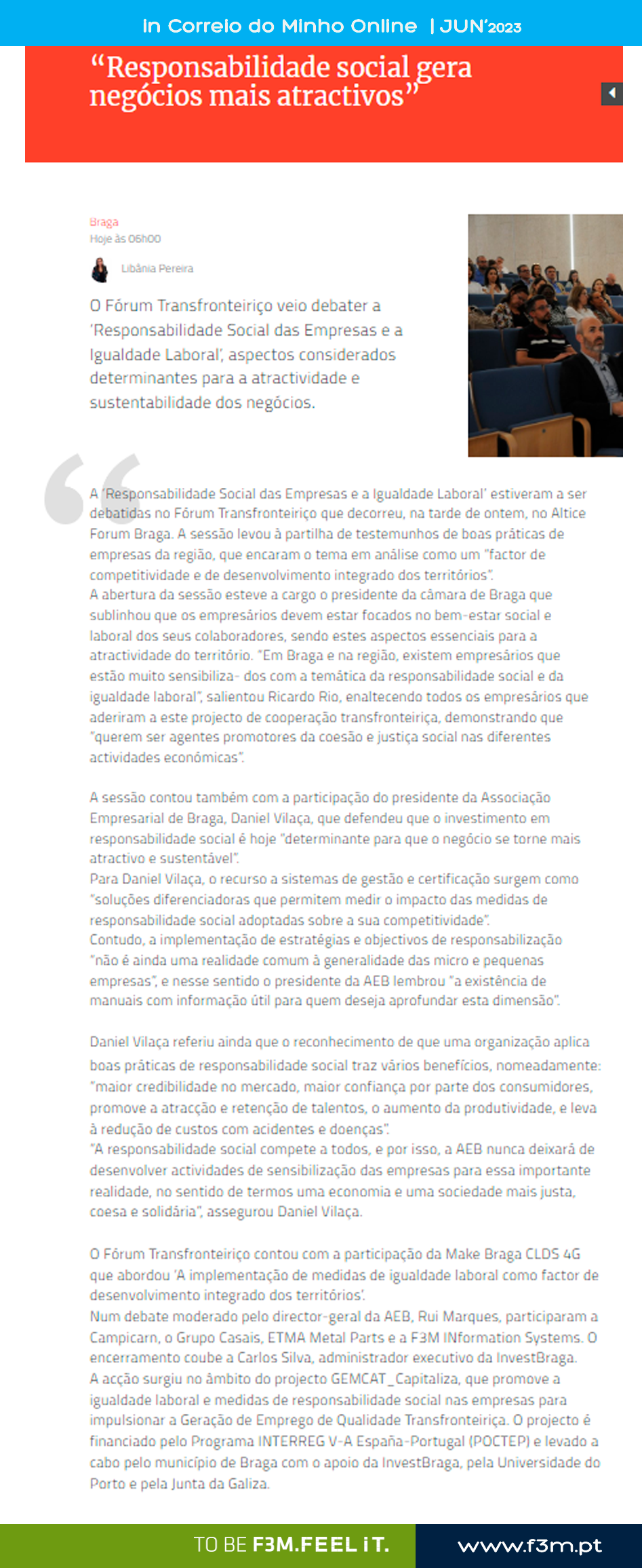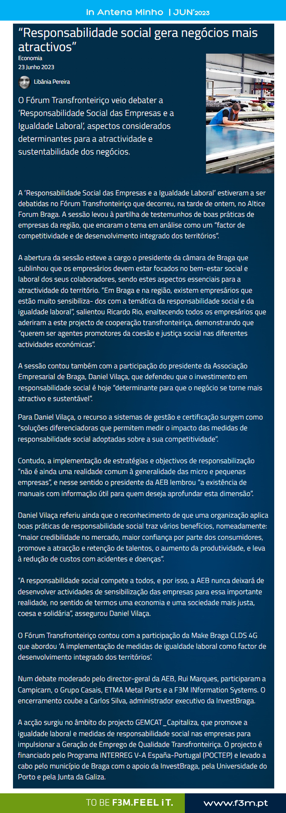 Braga: Fórum Transfronteiriço demonstra Responsabilidade Social e Igualdade Laboral das Empresas (JUN'2023)