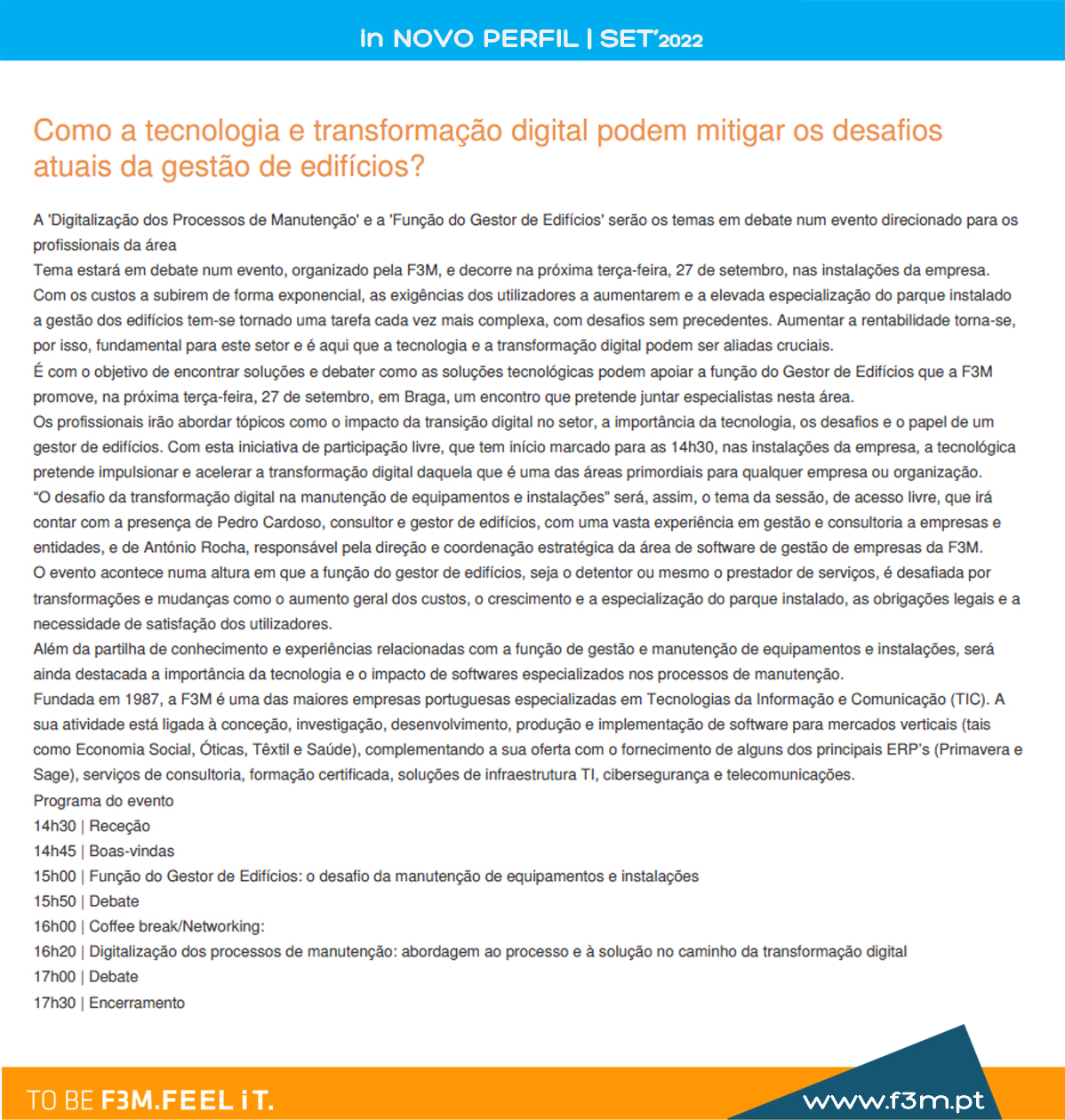 ESPECIALISTAS REÚNEM-SE NA F3M PARA DEBATER GESTÃO DE EDIFÍCIOS (SET'2022)