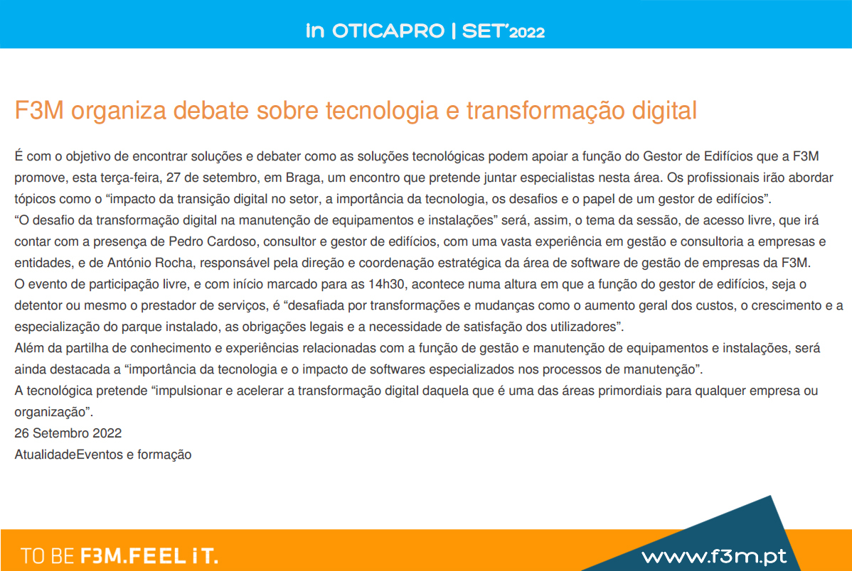 F3M organiza debate sobre tecnologia e transformação digital (SET'2022)