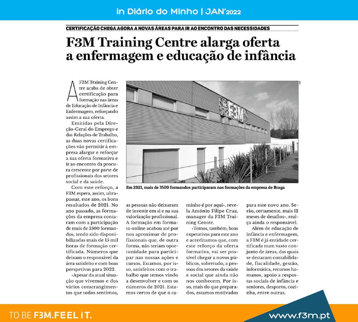 F3M Training Centre alarga oferta a enfermagem e educação de infância (JAN'2022)