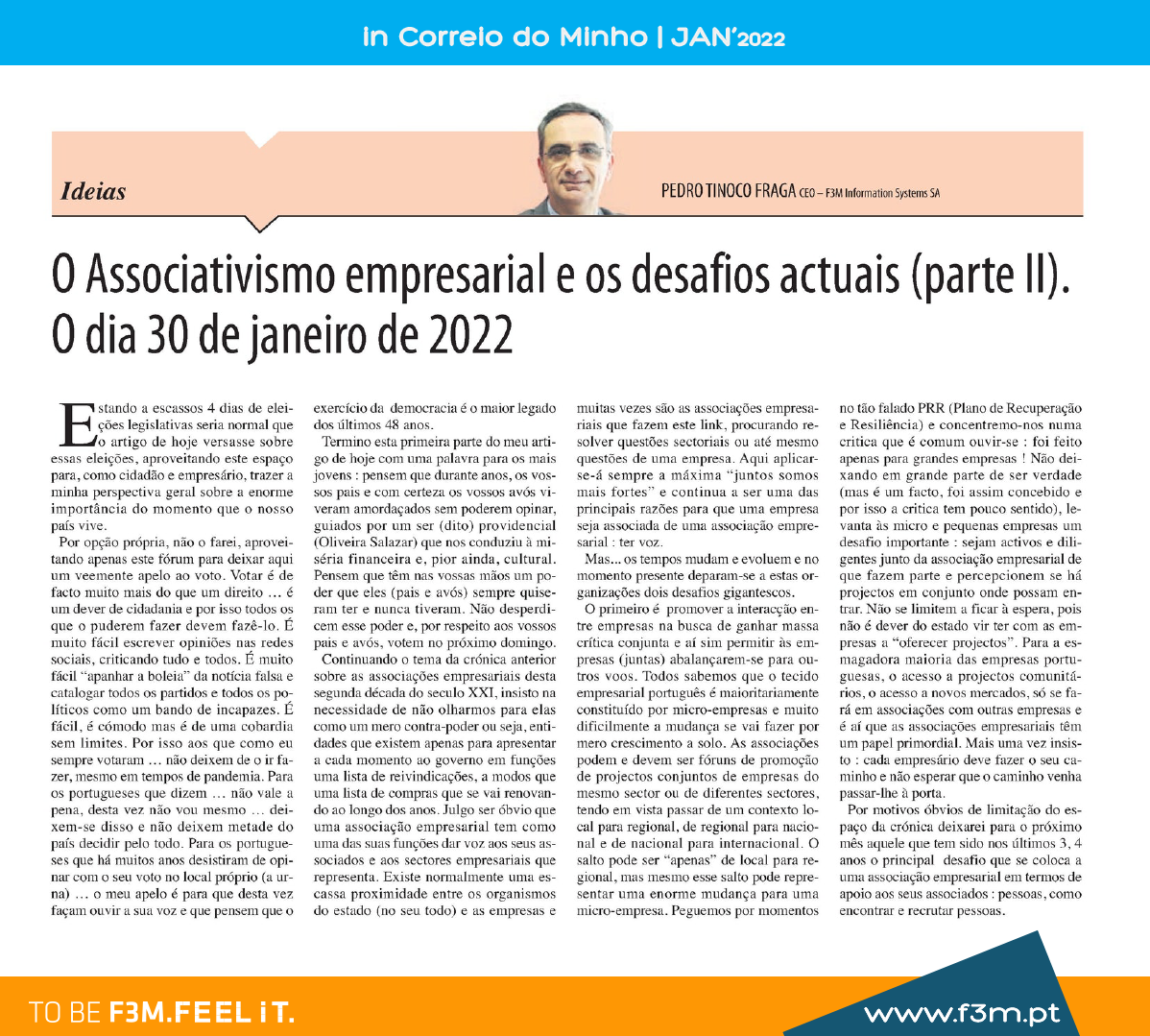 O Associativismo empresarial e os desafios actuais (parte II). O dia 30 de janeiro de 2022 (JAN'2022)
