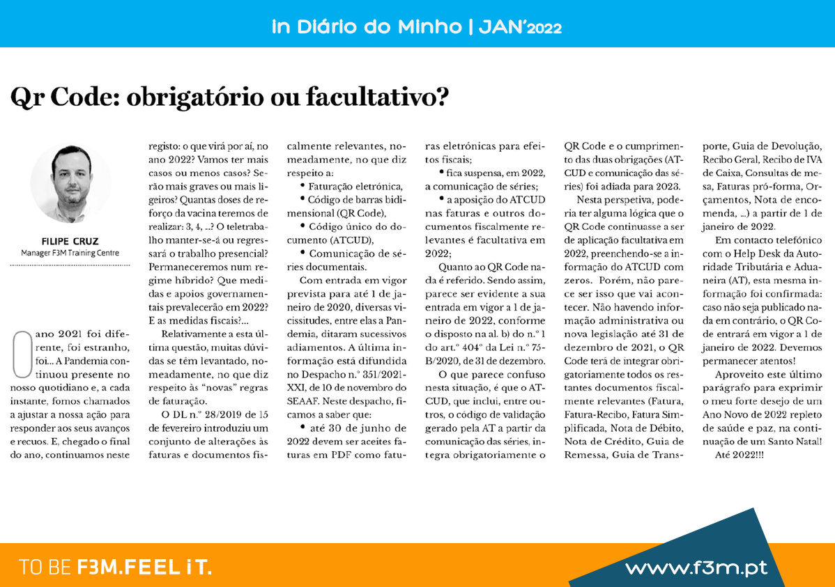 Qr Code: obrigatório ou facultativo? (JAN'2022)