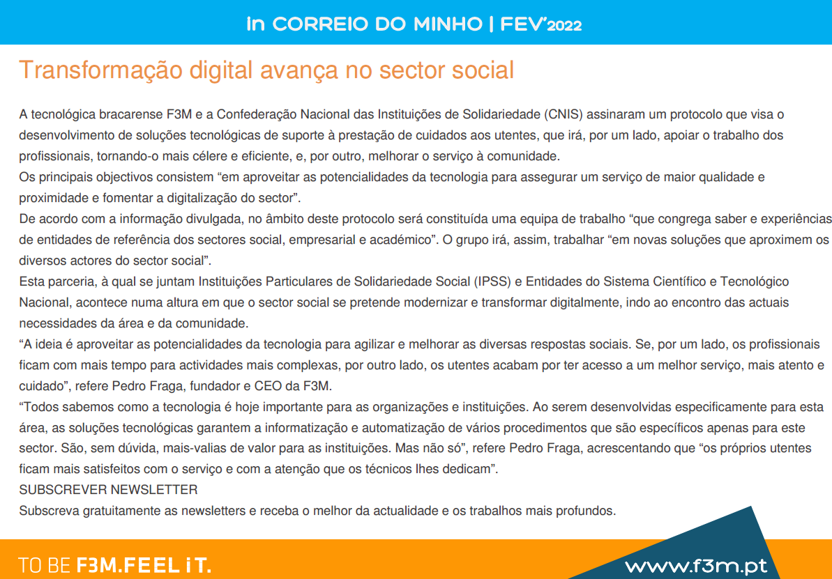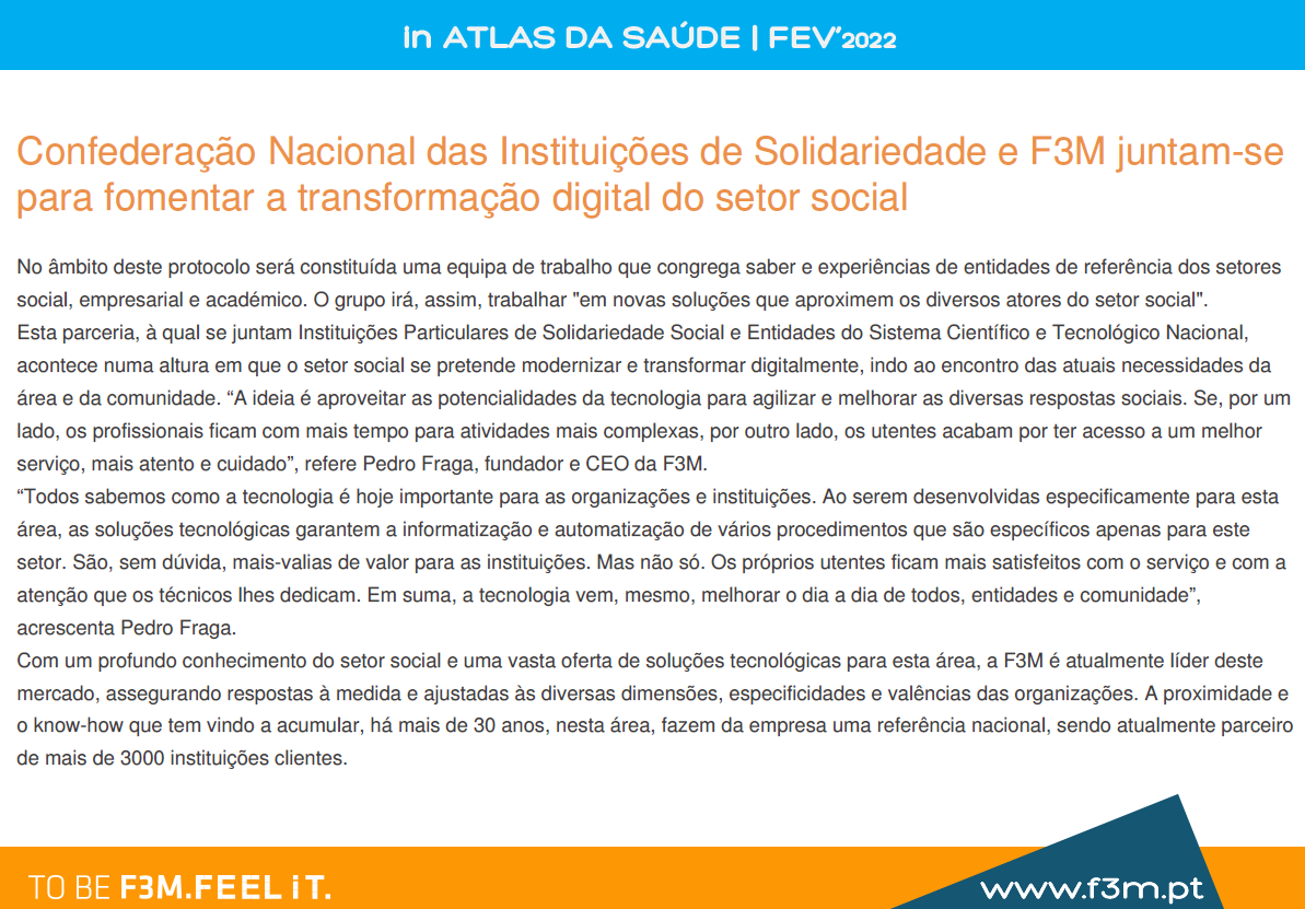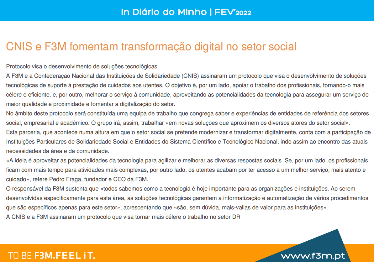Confederação Nacional das Instituições de Solidariedade e F3M juntam-se para fomentar a transformação digital do setor social (F