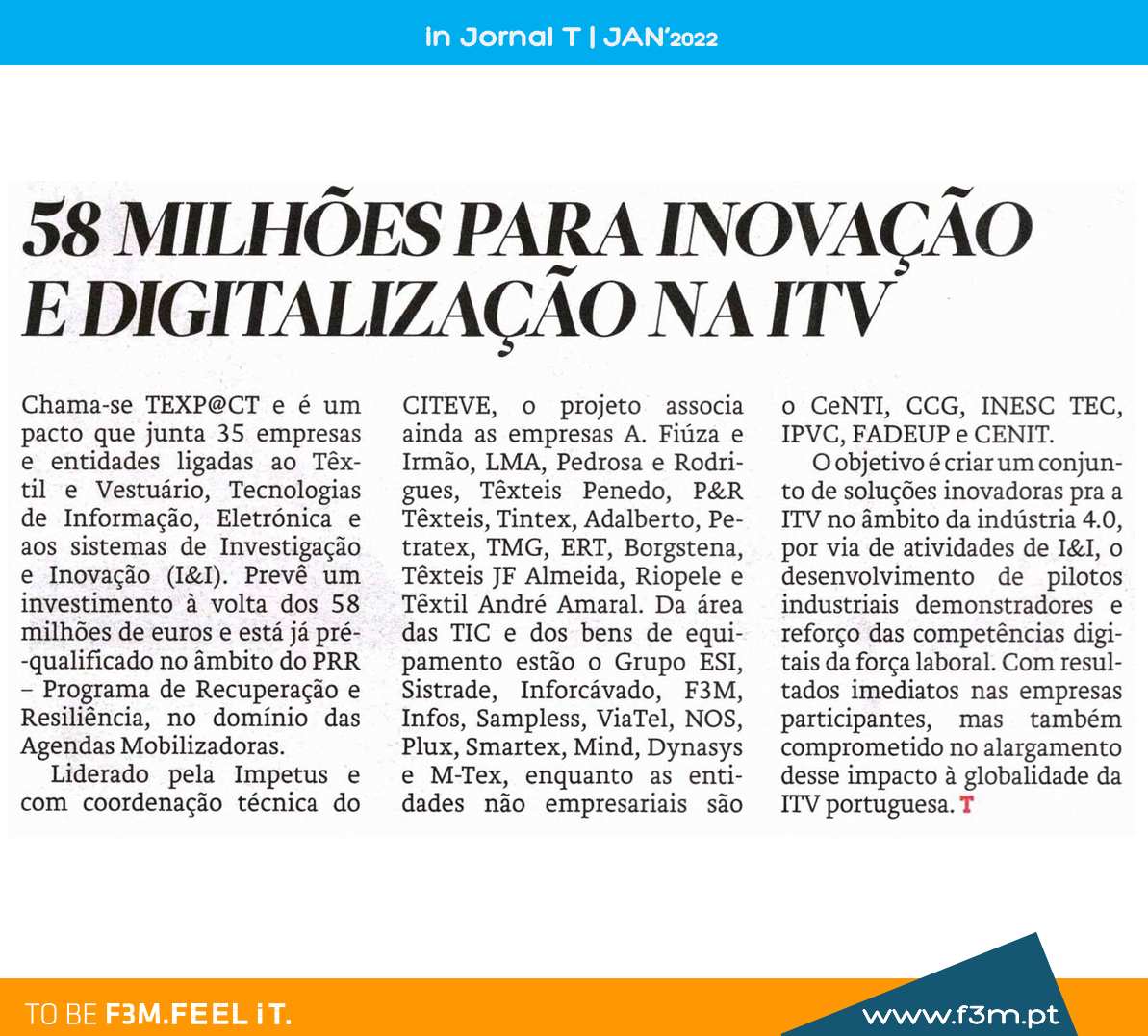 58 MILHÕES PARA INOVAÇAO E DIGITALIZAÇAO NA ITV (JAN'2022)