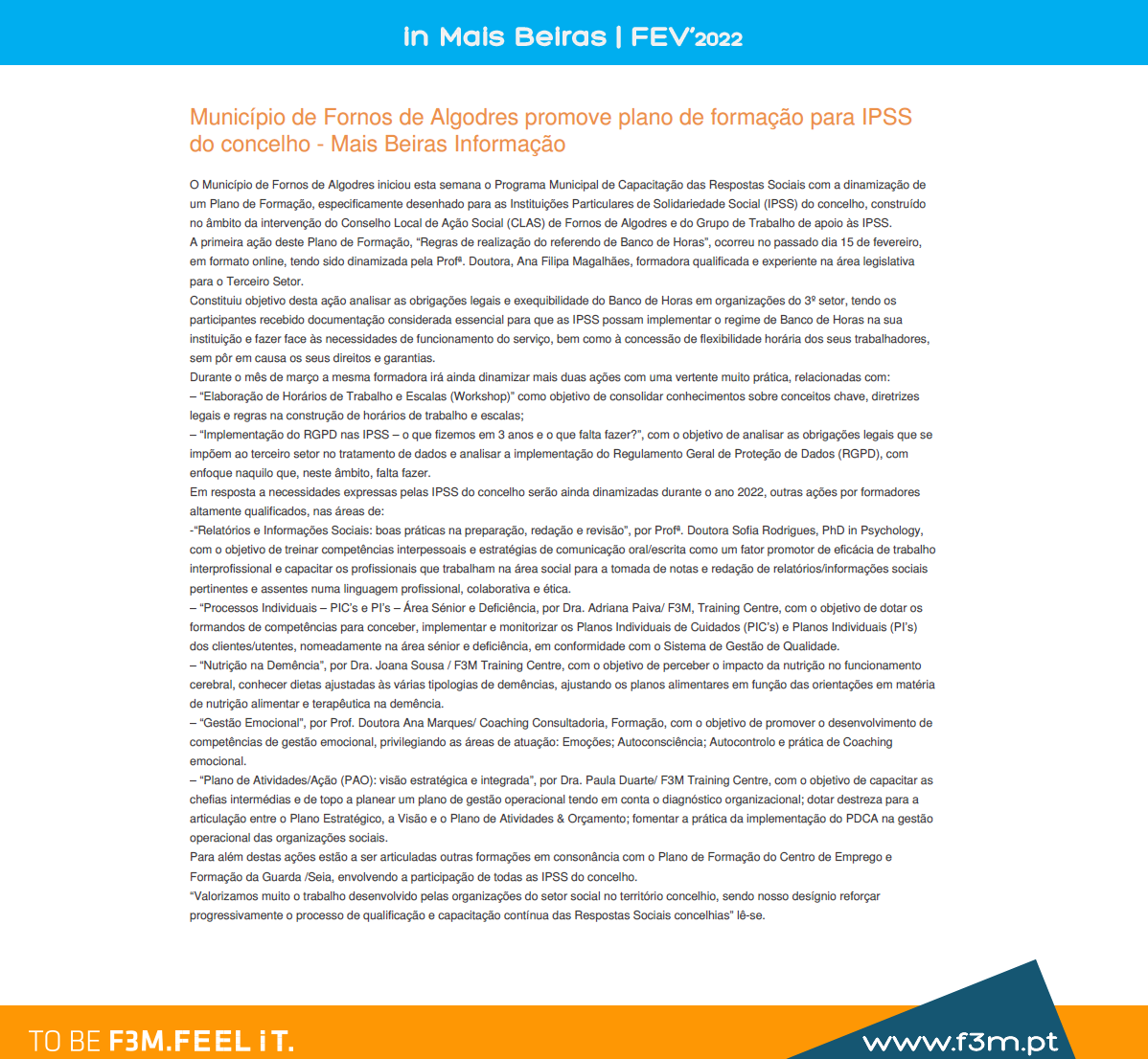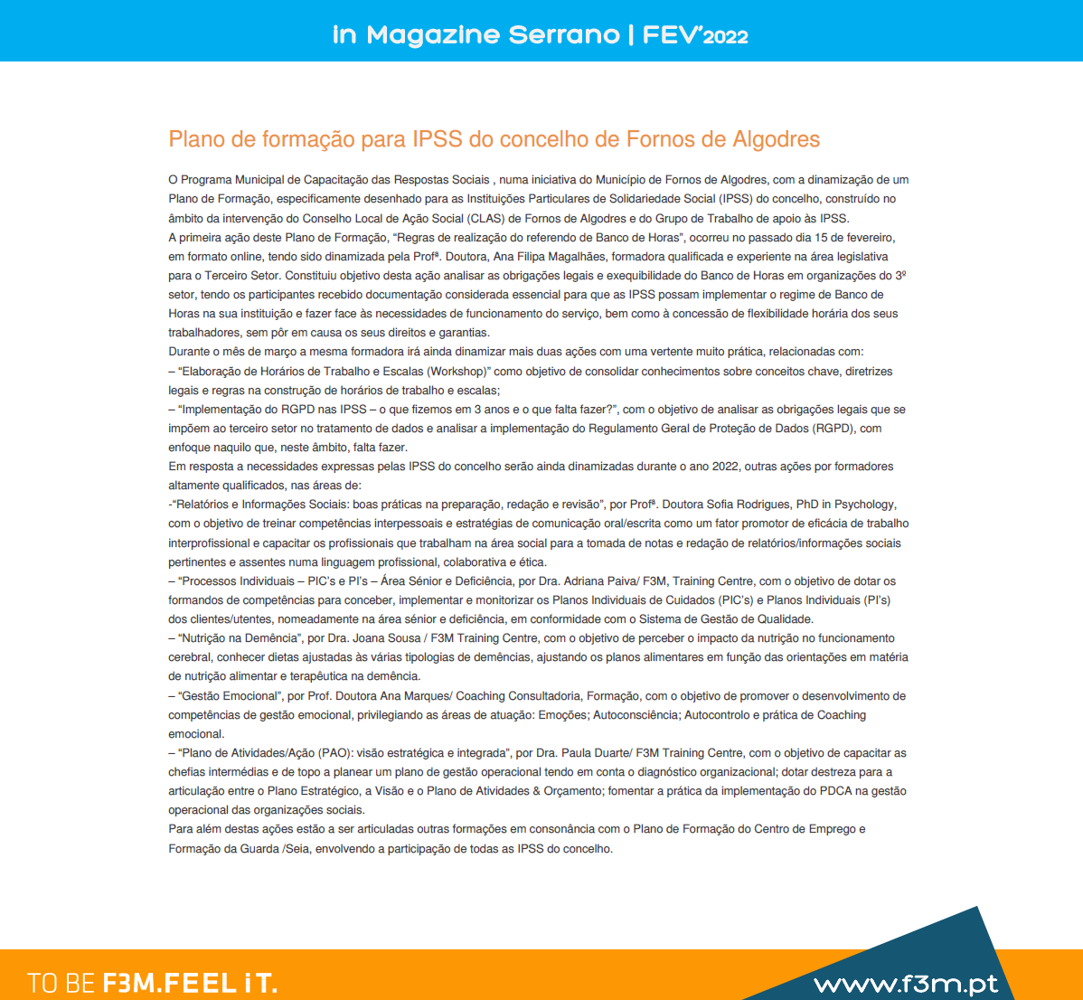 Plano de formação para IPSS do concelho de Fornos de Algodres (FEV'2022)