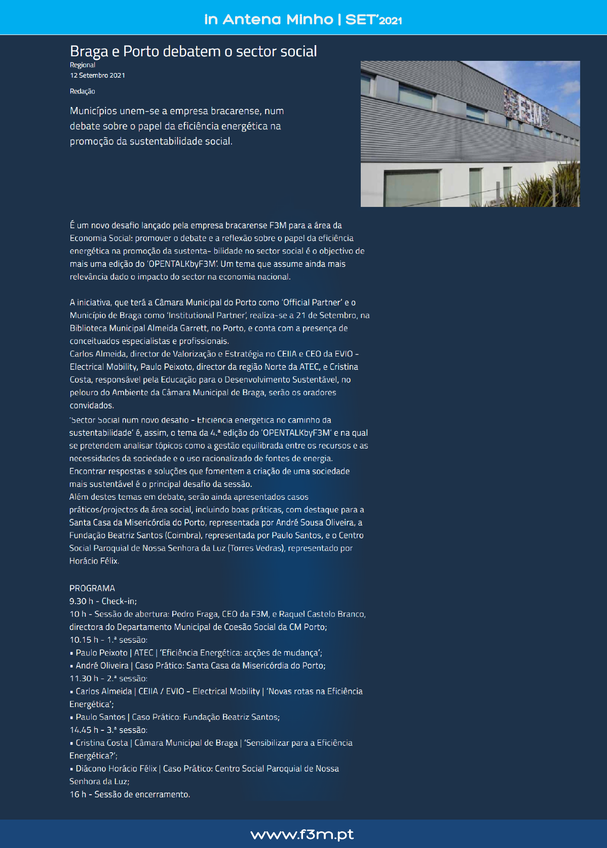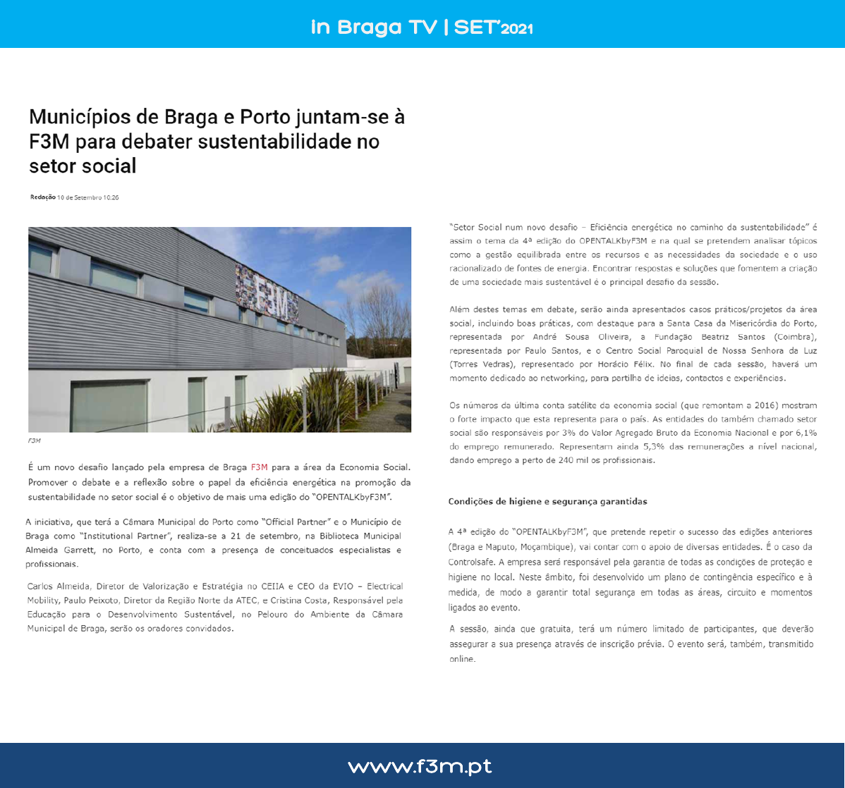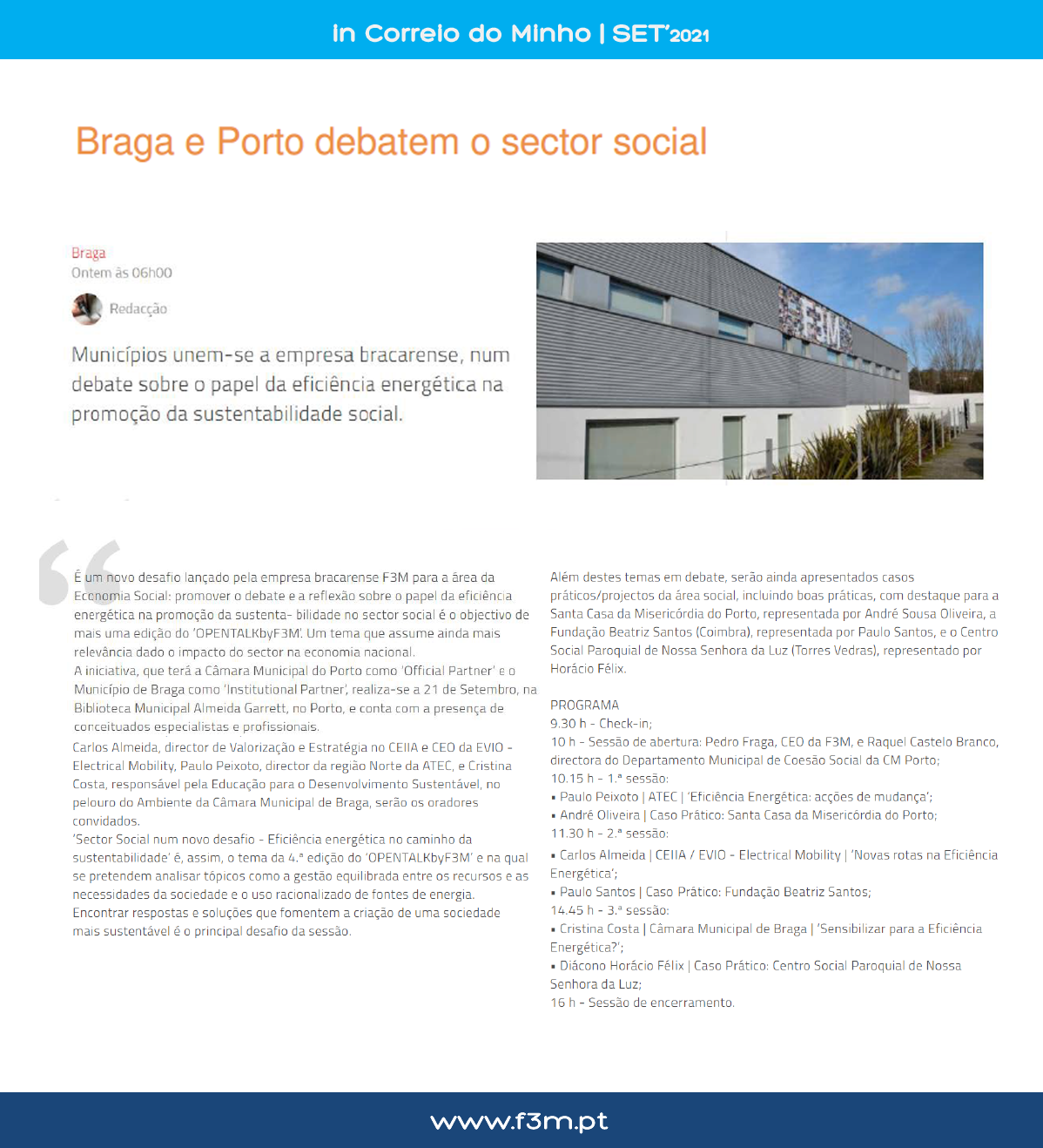 Municípios de Braga e Porto juntam-se à F3M para debater sustentabilidade no setor social (SET'2021)