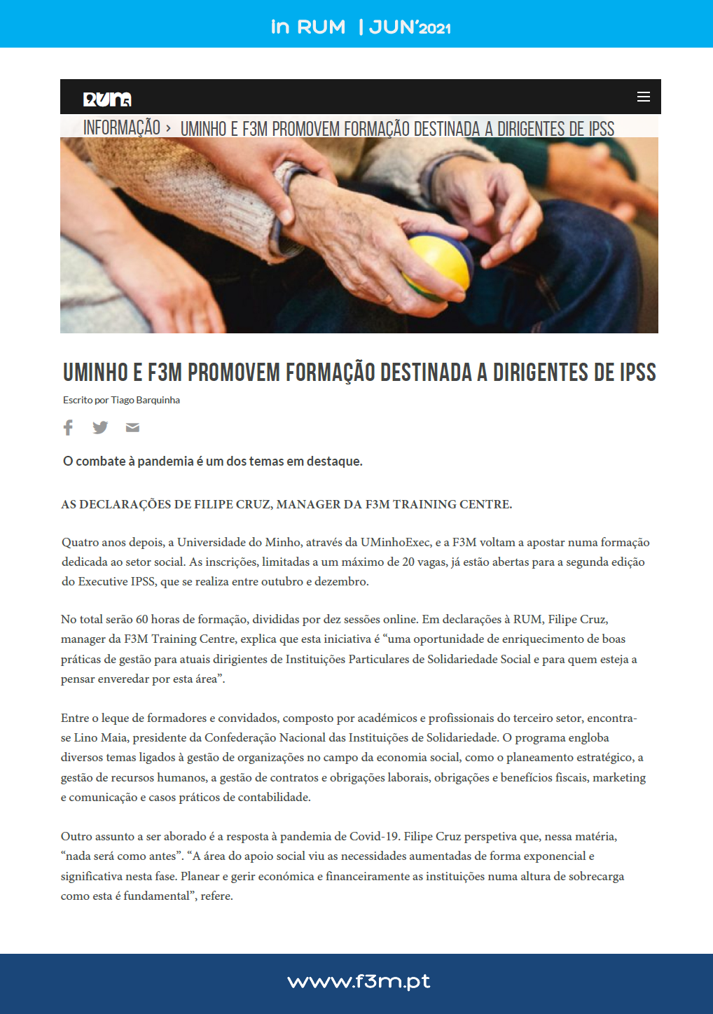 F3M e UMinhoExec querem formar e valorizar gestores do sector social com formação especializada (JUN'2021)