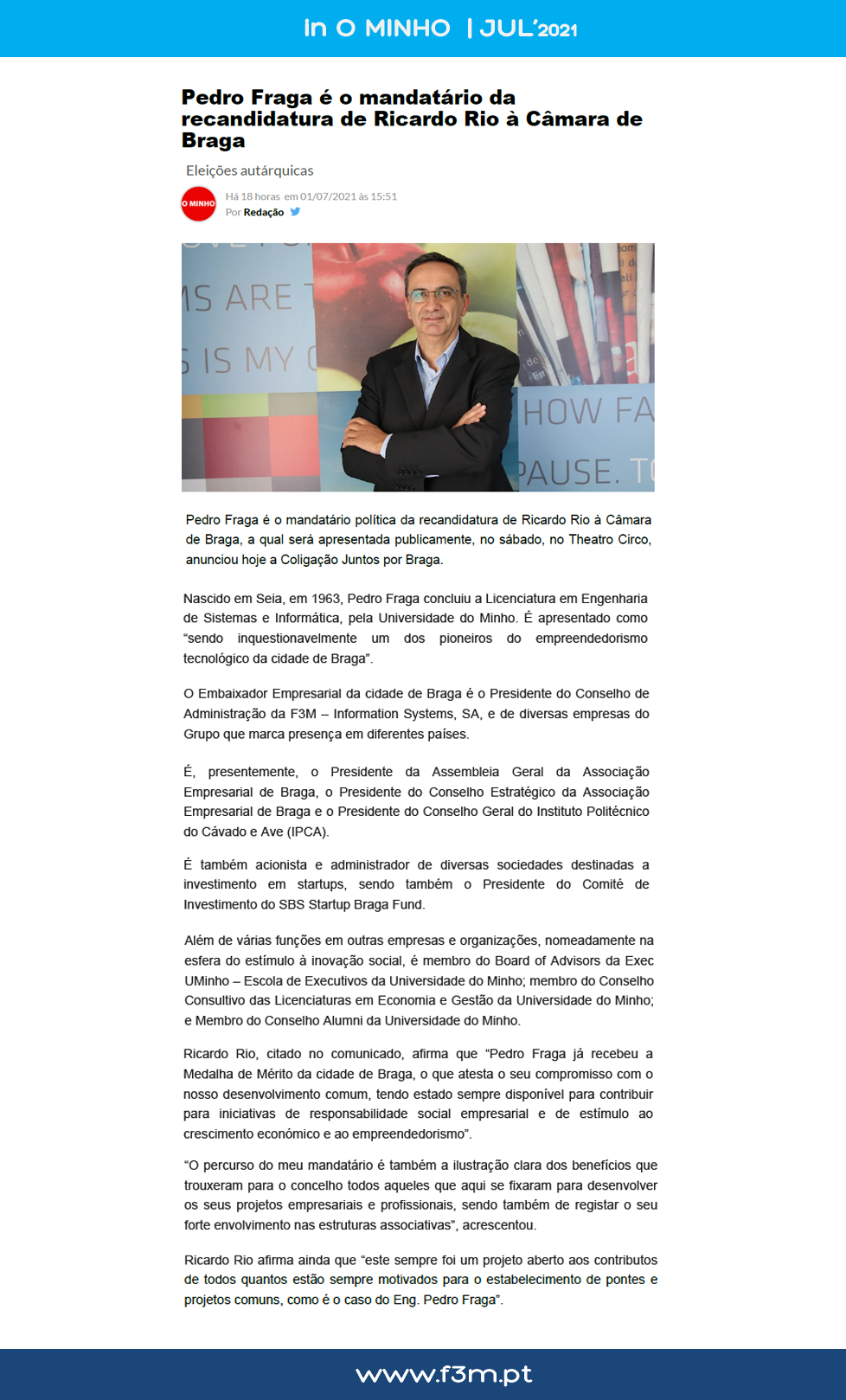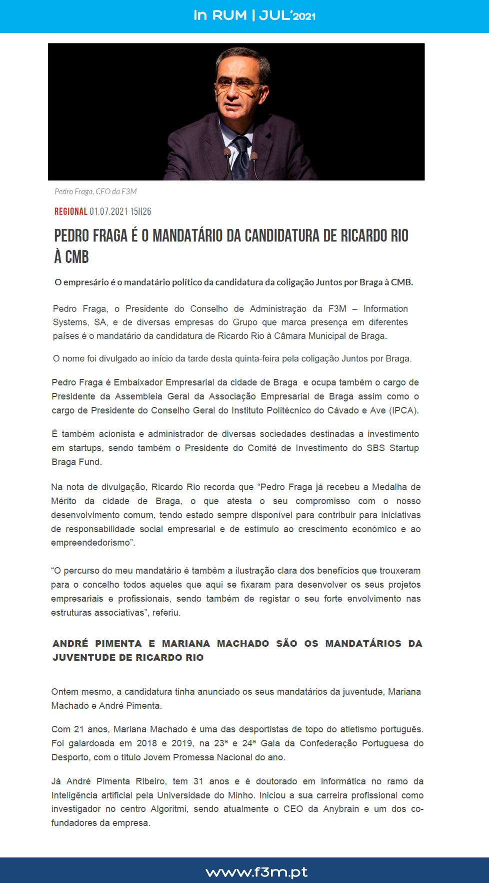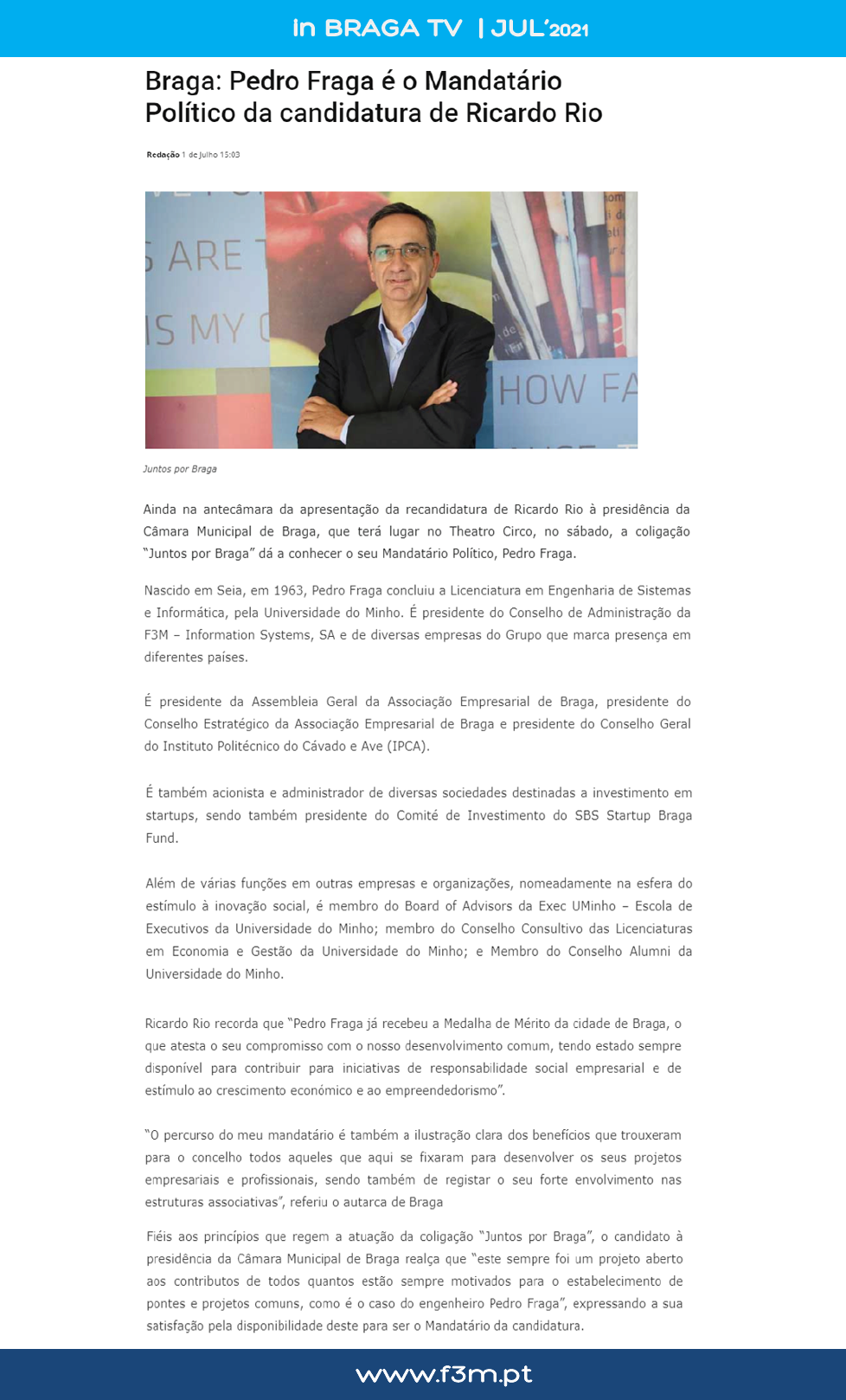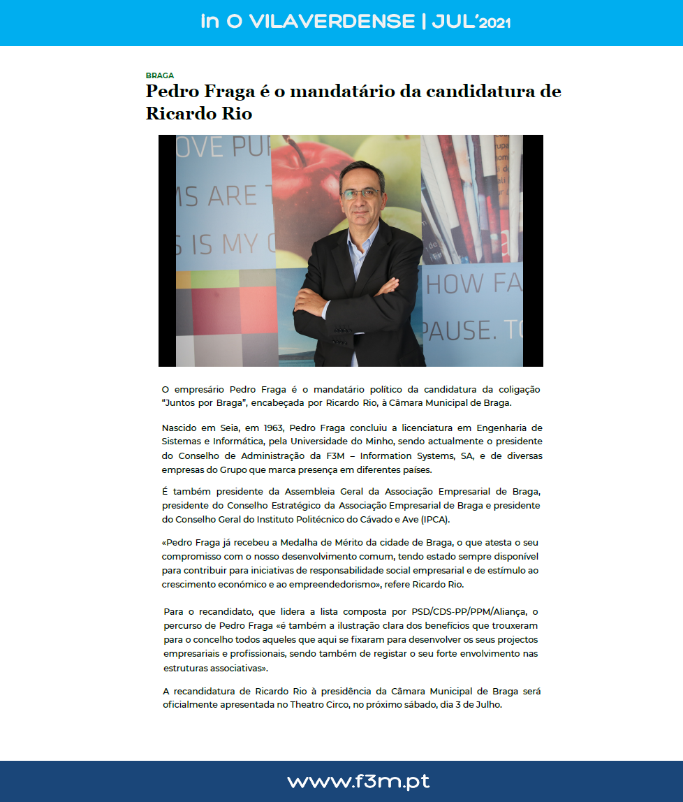 Pedro Fraga é o mandatário da candidatura de Ricardo Rio a CMB (JUL'2021)