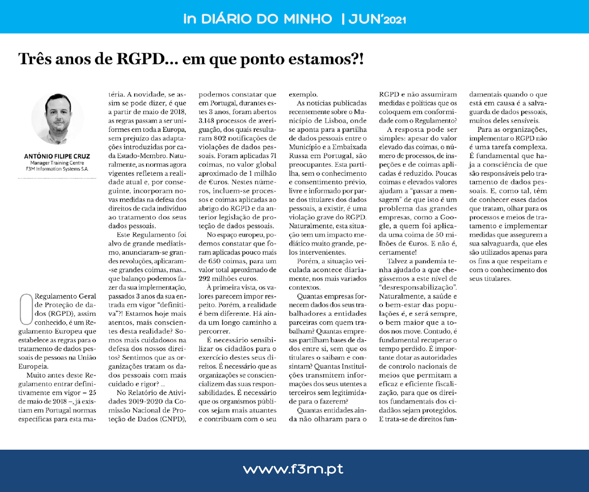Três anos de RGPD... em que ponto estamos?! (JUN'2021)