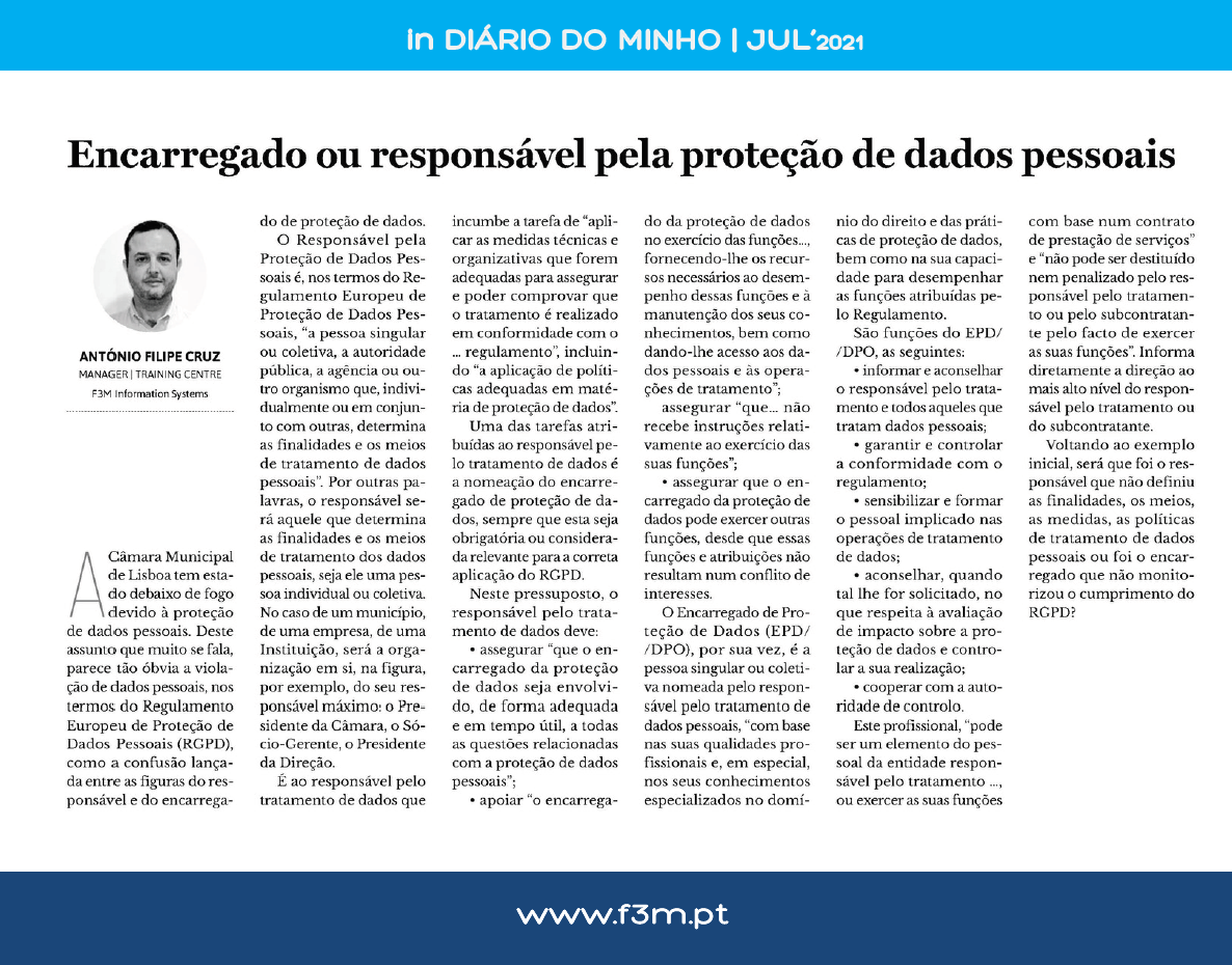 Encarregado ou responsável pela proteção de dados pessoais (JUL'2021)