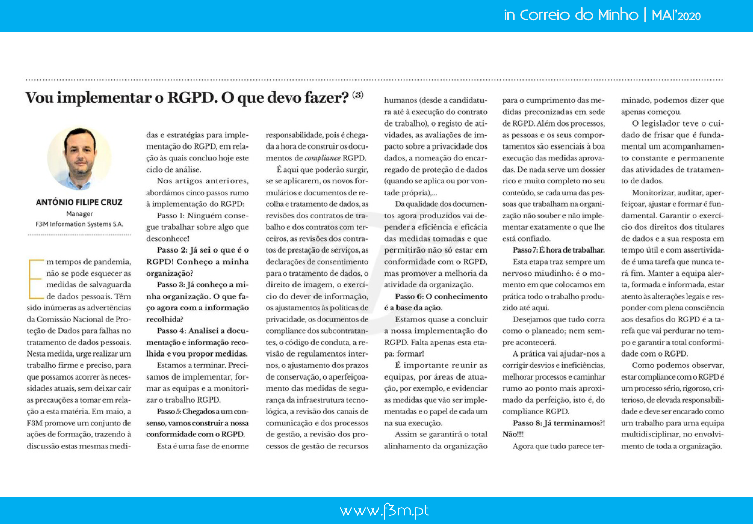 Opinião - Vou implementar o RGPD. O que devo fazer? (ABR2020)