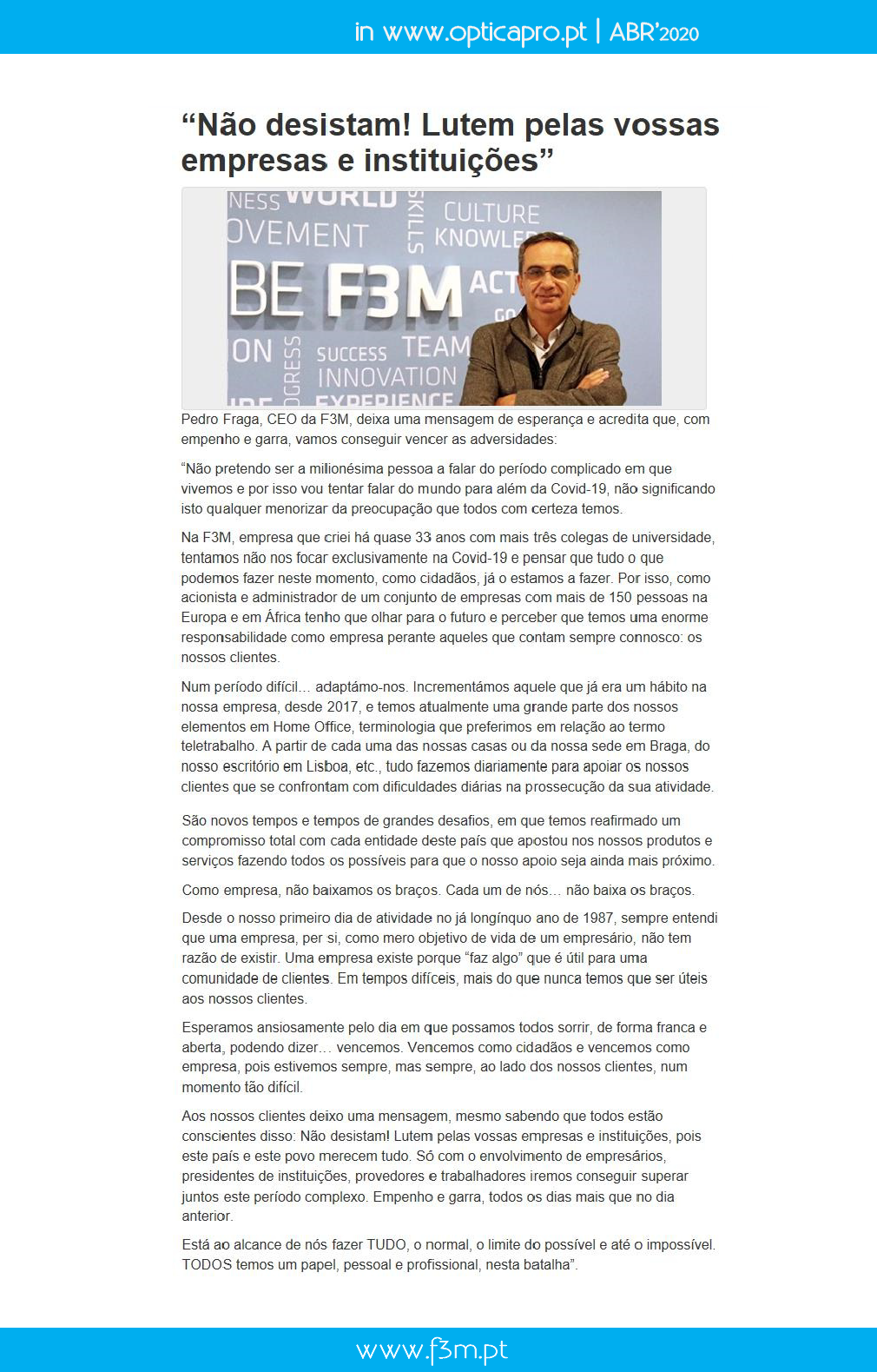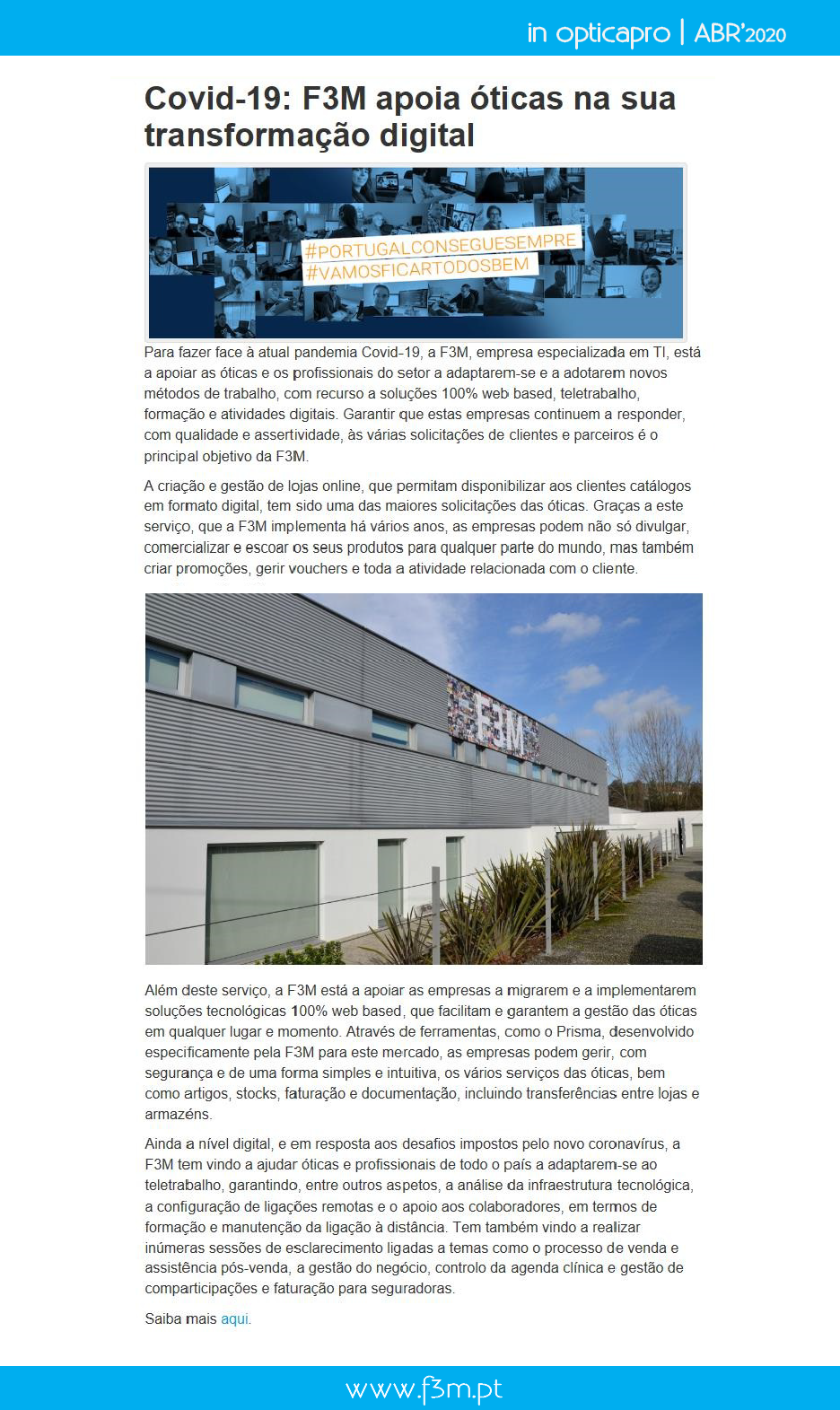 Covid-19: F3M apoia óticas na sua transformação digital (ABR2020)