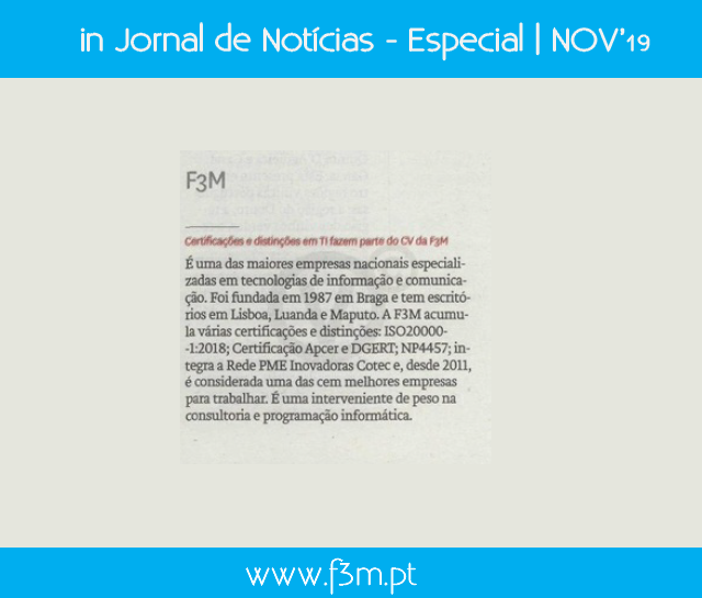 Certificações e distinções em TI fazem parte do CV da F3M (NOV2019)