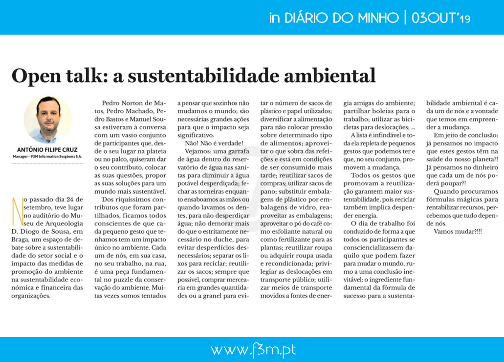 Open talk: a sustentabilidade ambiental (OUT2019)