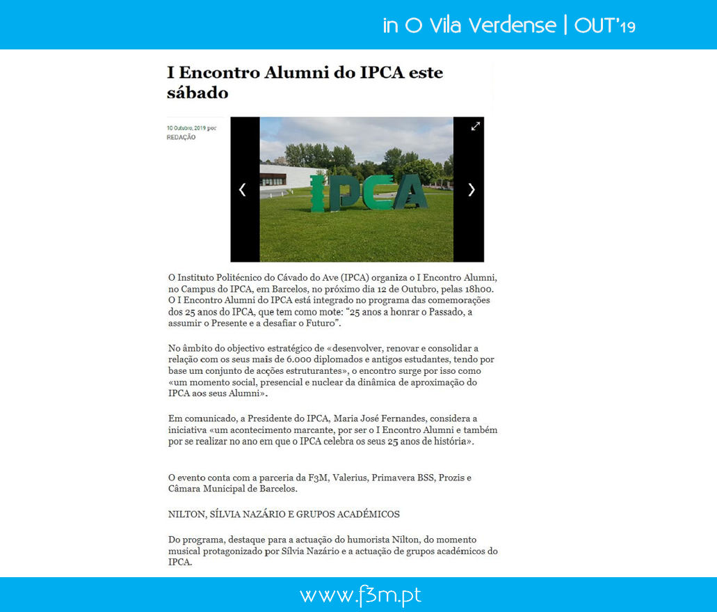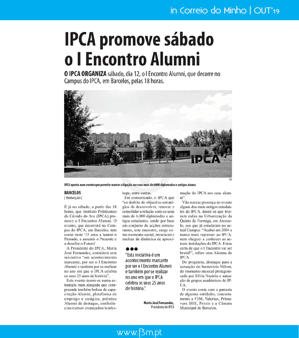 I Encontro Alumni do IPCA este sábado (OUT2019)