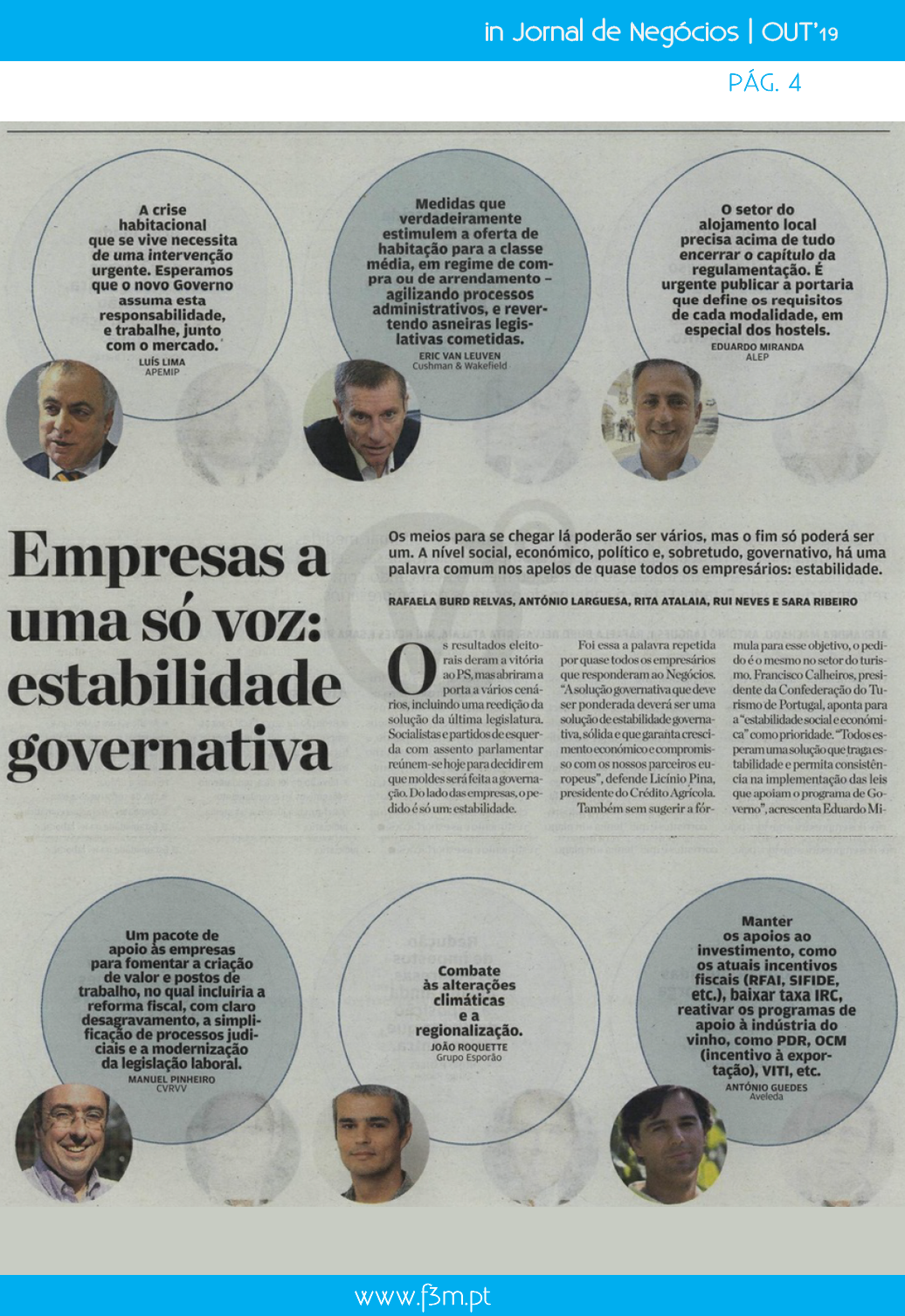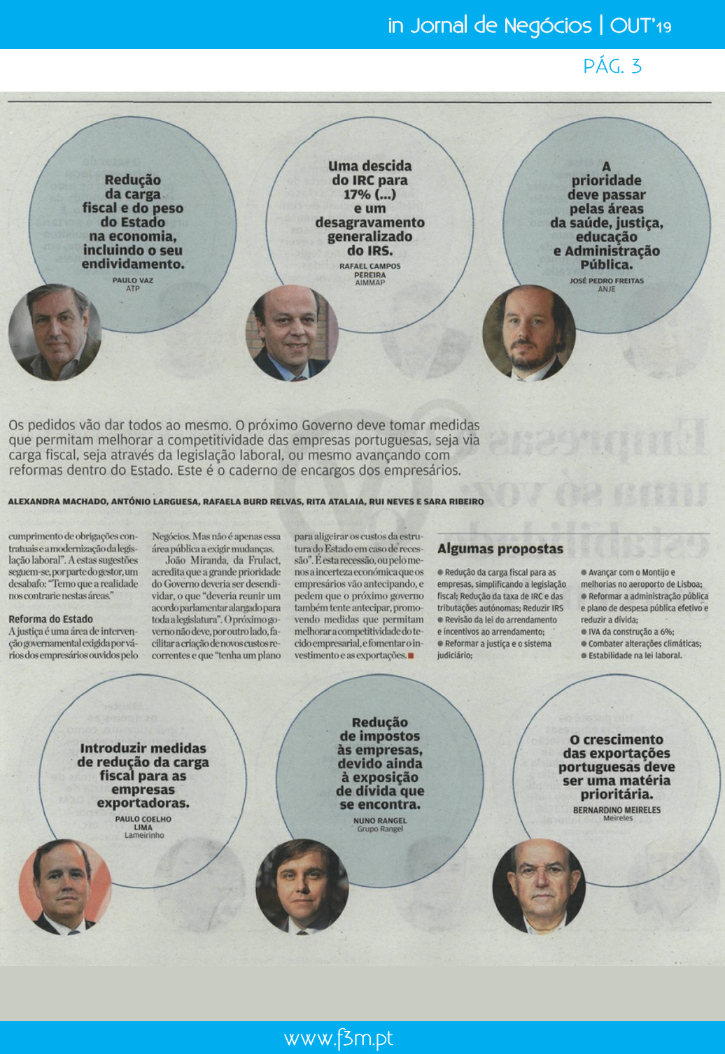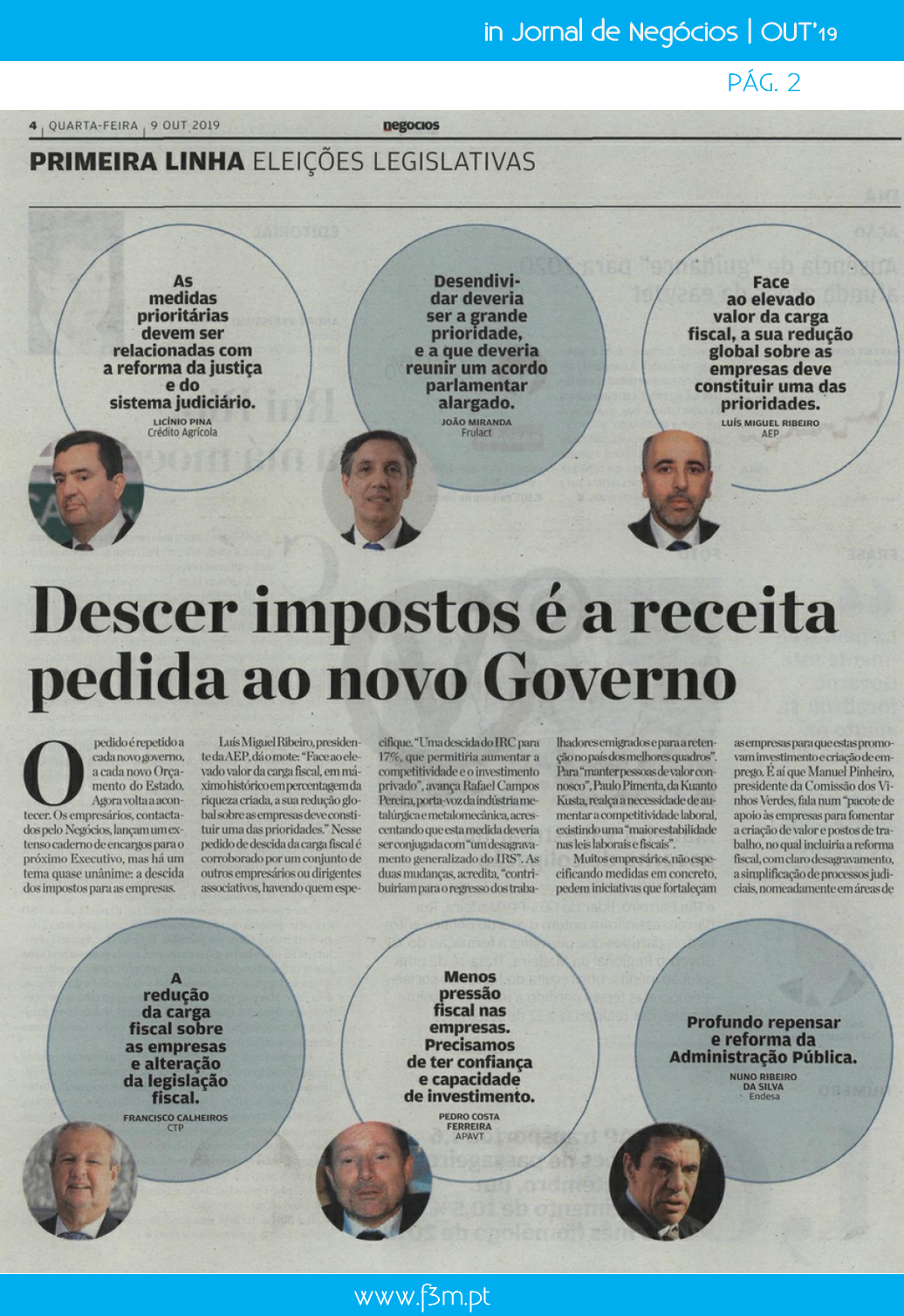 Empresários pedem estabilidade governativa e menos impostos (OUT2019)