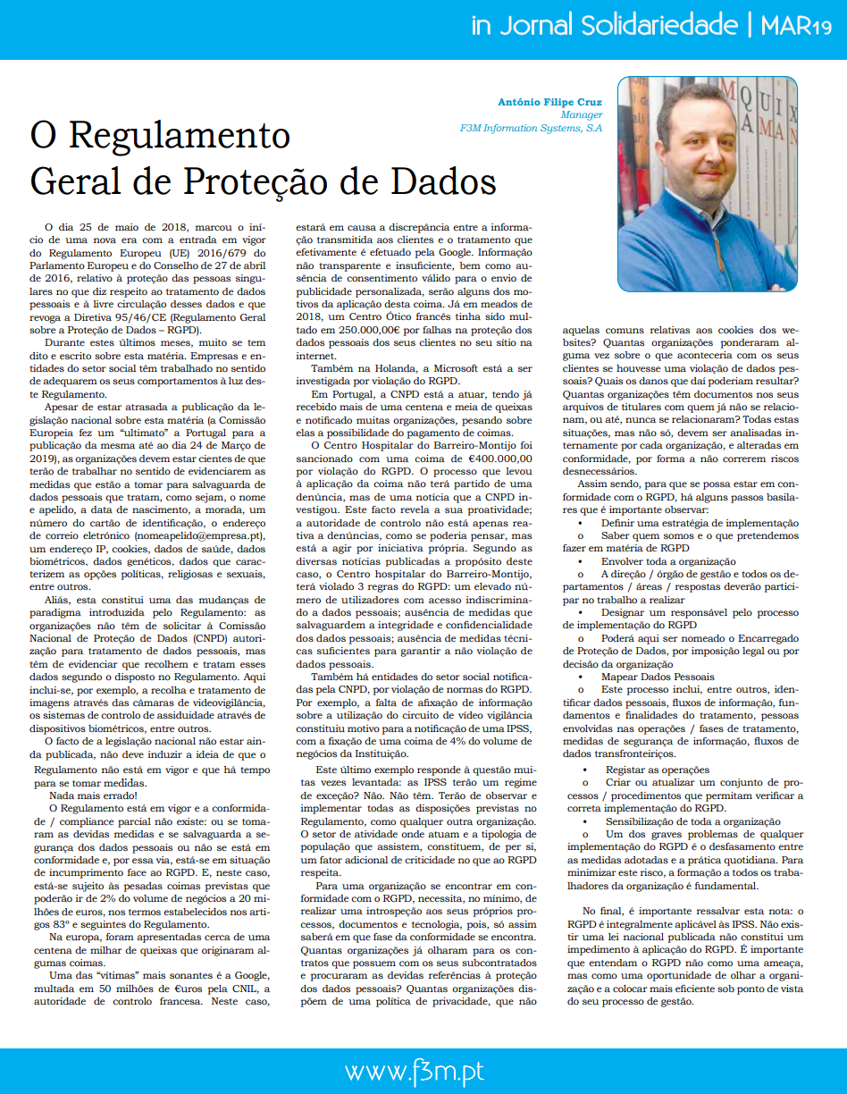 O Regulamento Geral de Proteção de Dados (MAR2019)