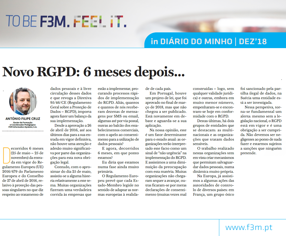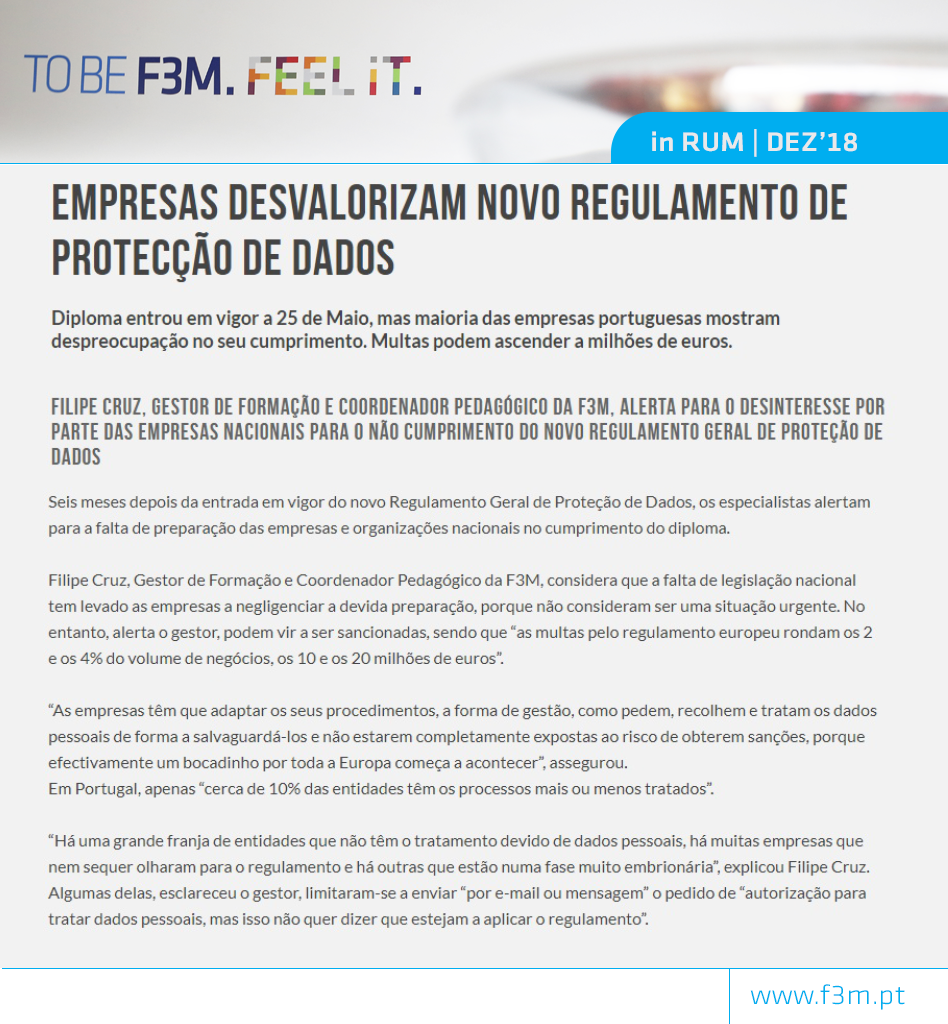 Empresas desvalorizam novo Regulamento de Proteção de Dados (DEZ2018)