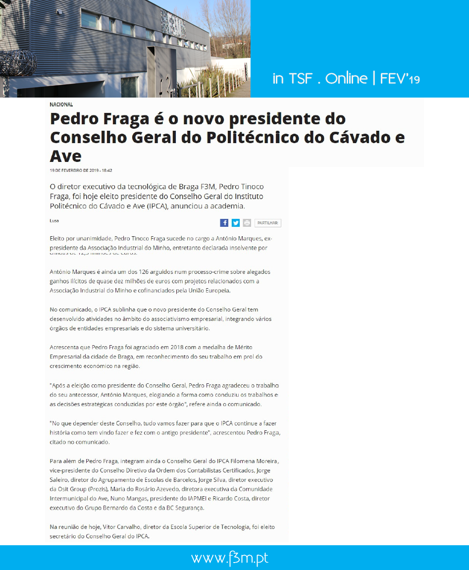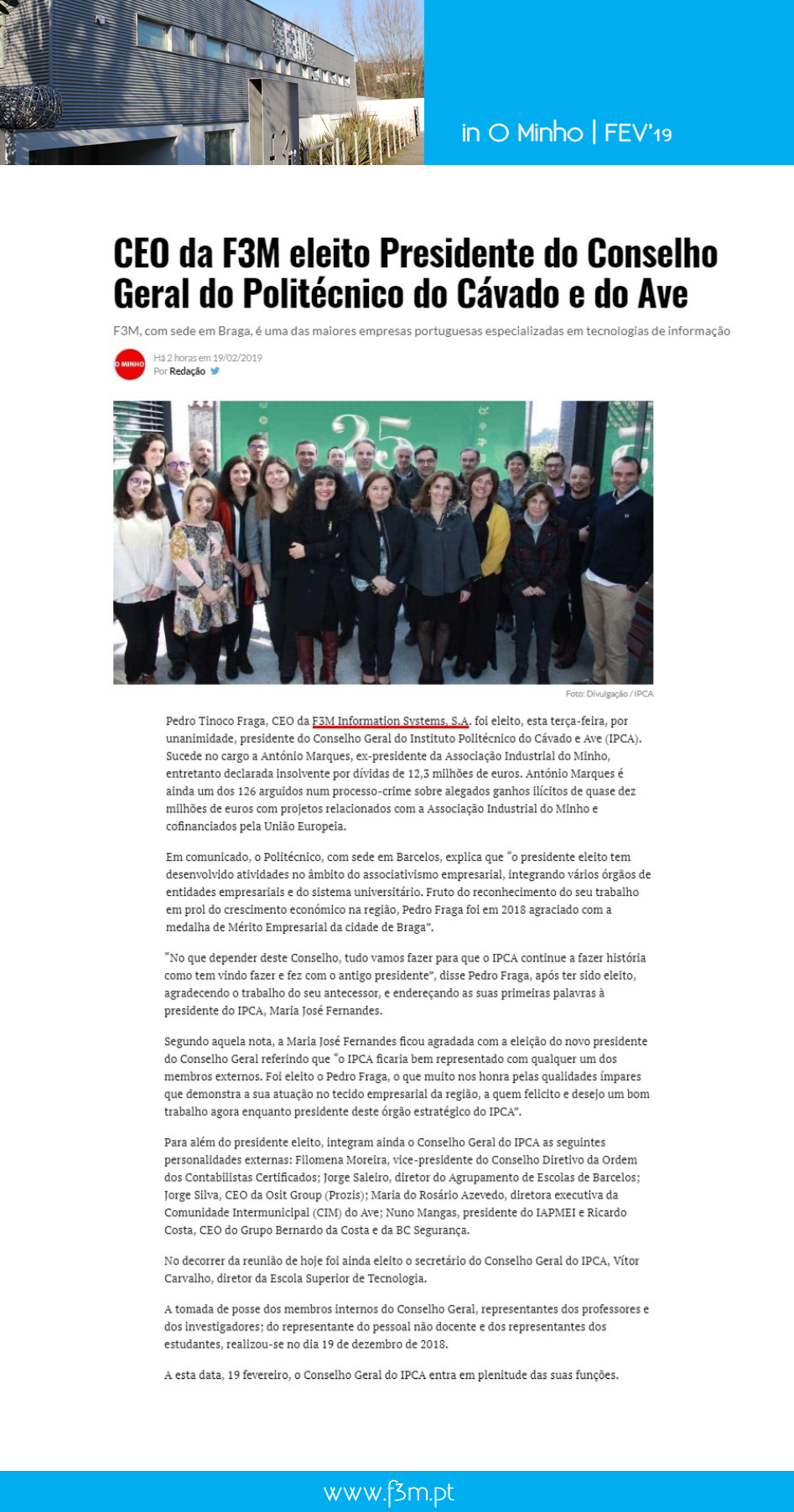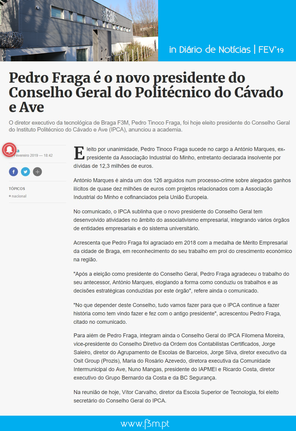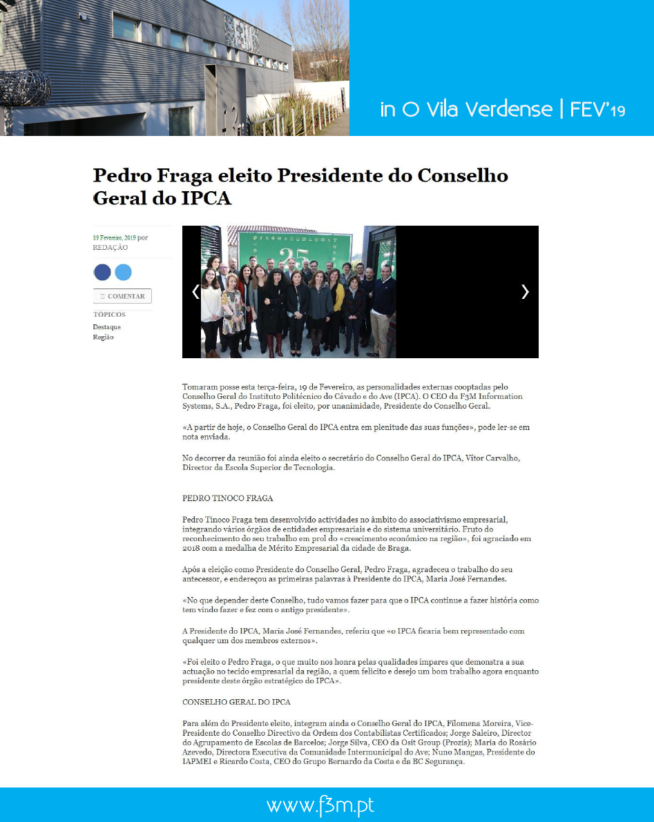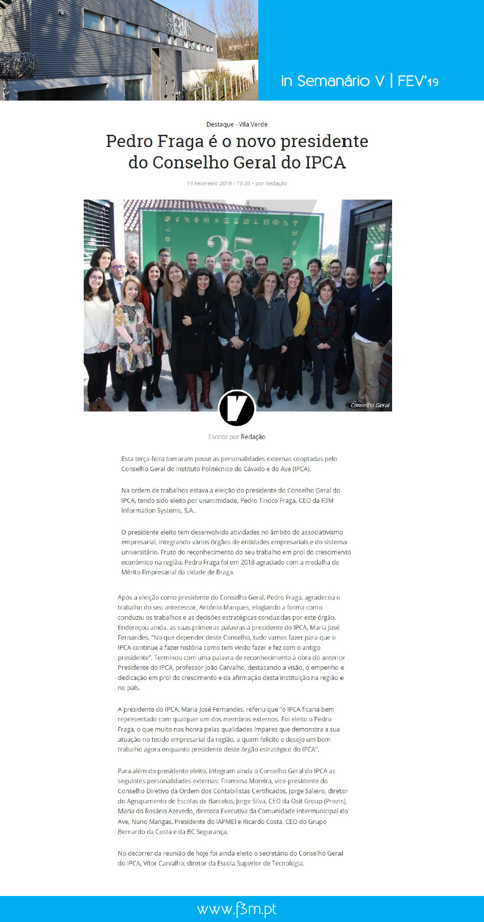 Pedro Fraga é o novo Presidente do Conselho Geral do IPCA (FEV2019)