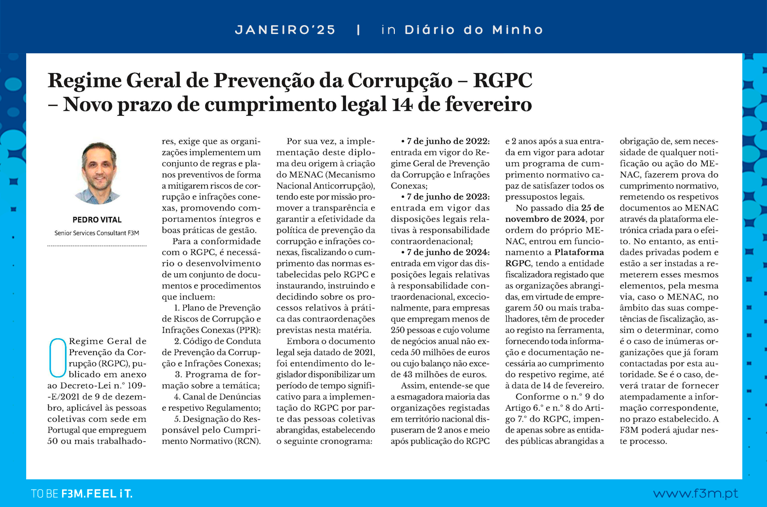 Regime Geral de Prevenção da Corrupção – RGPC – Novo prazo de cumprimento legal 14 de fevereiro