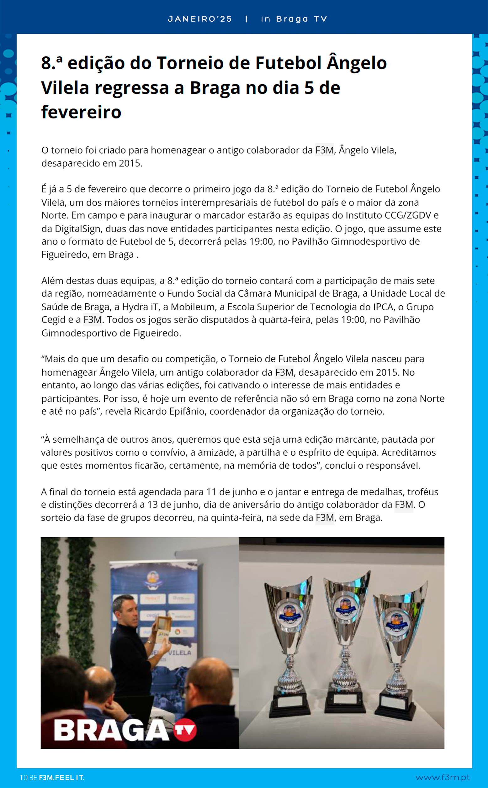 8.ª edição do Torneio de Futebol Ângelo Vilela regressa a Braga no dia 5 de fevereiro