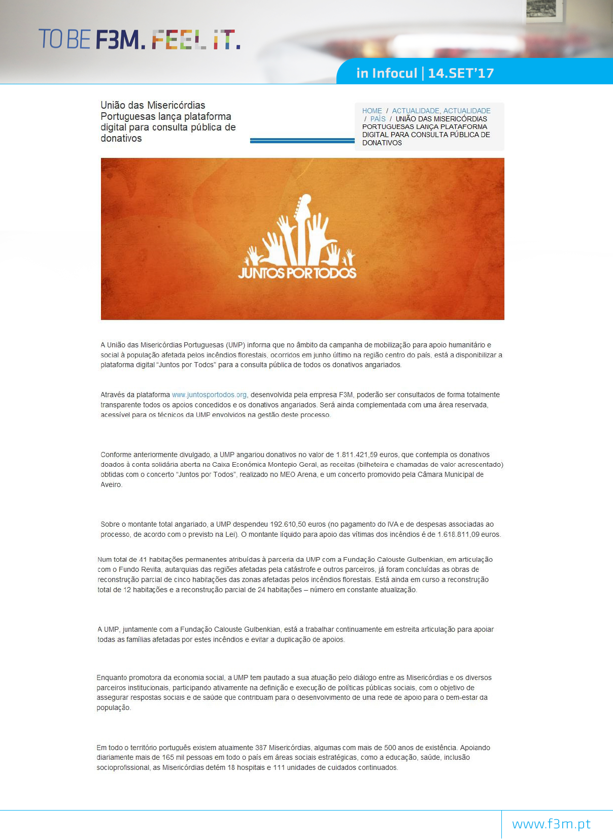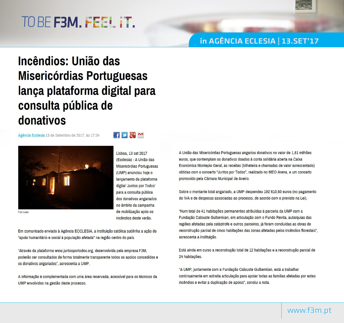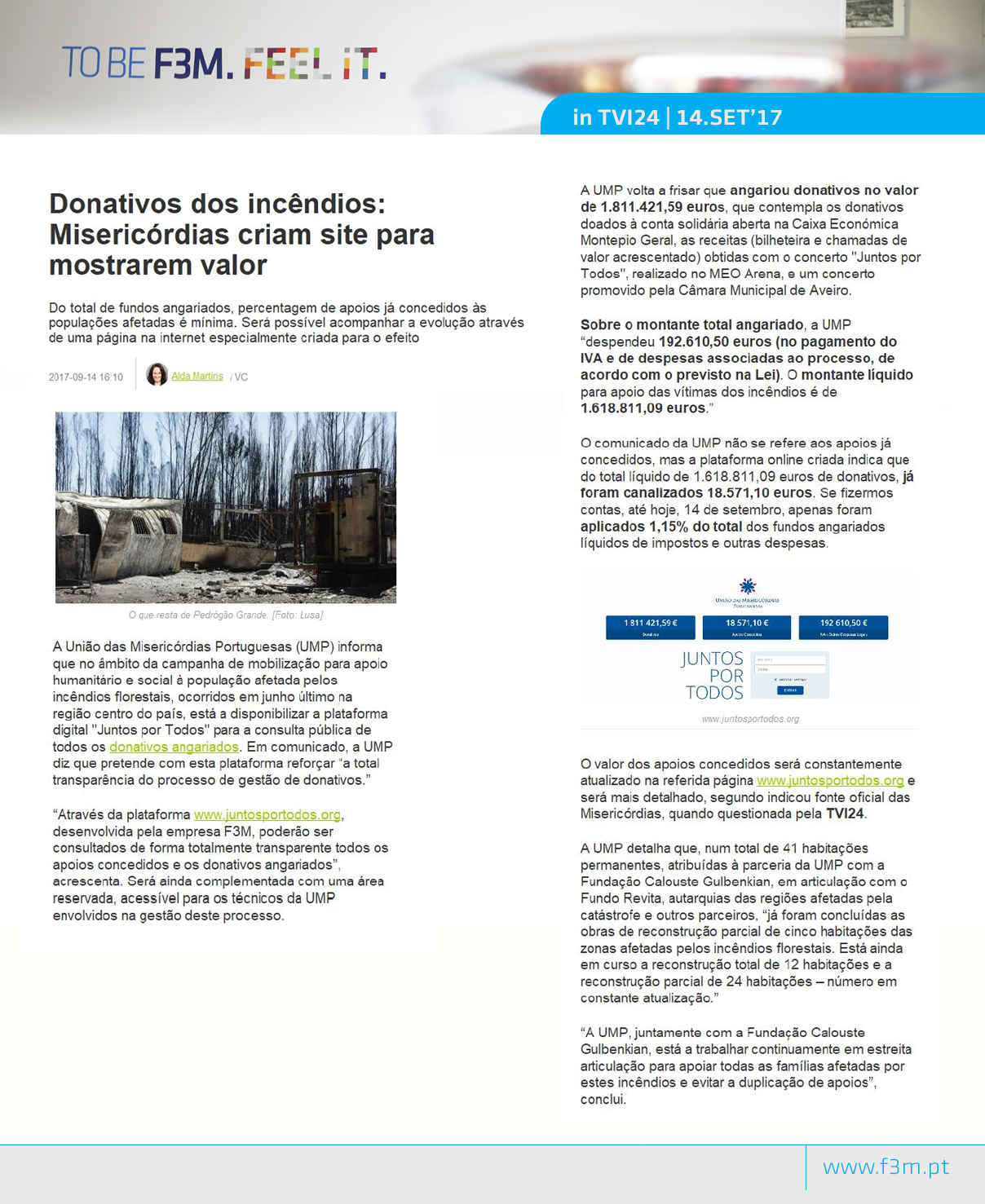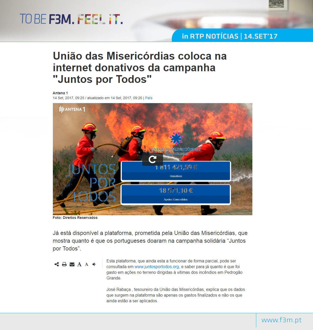 Incêndios: União das Misericórdias Portuguesas lança plataforma digital para consulta pública de donativos (SET2017)