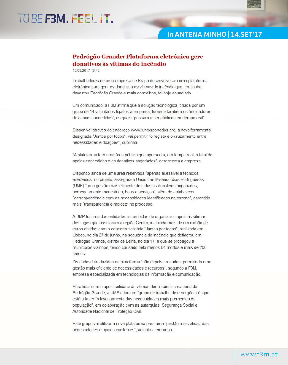 Plataforma electrónica gere donativos às vítimas do incêndio de Pedrógão Grande (SET2017)