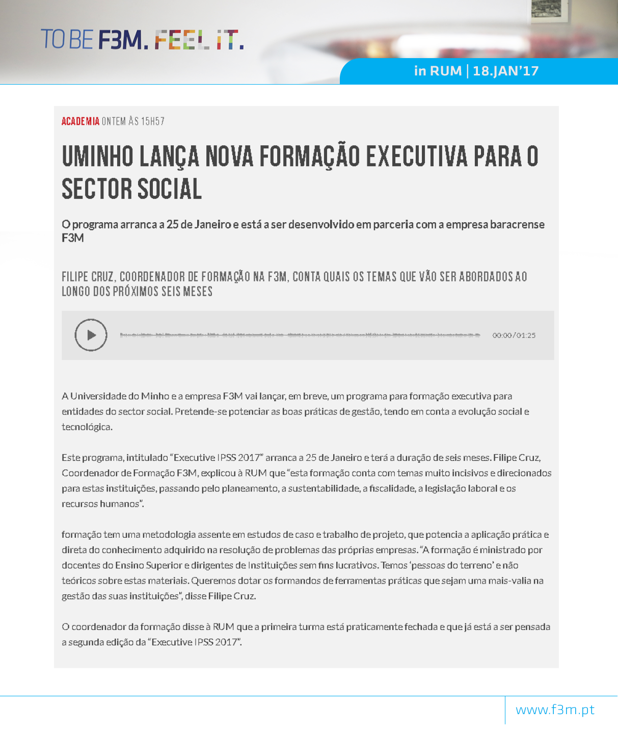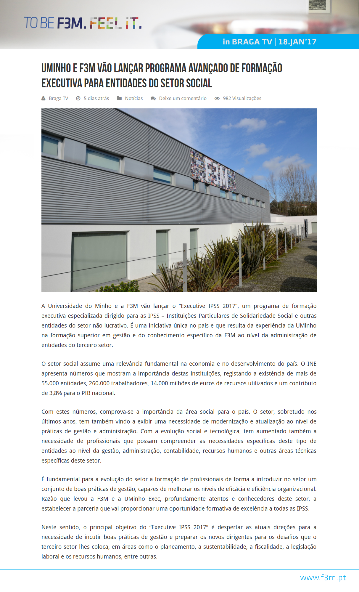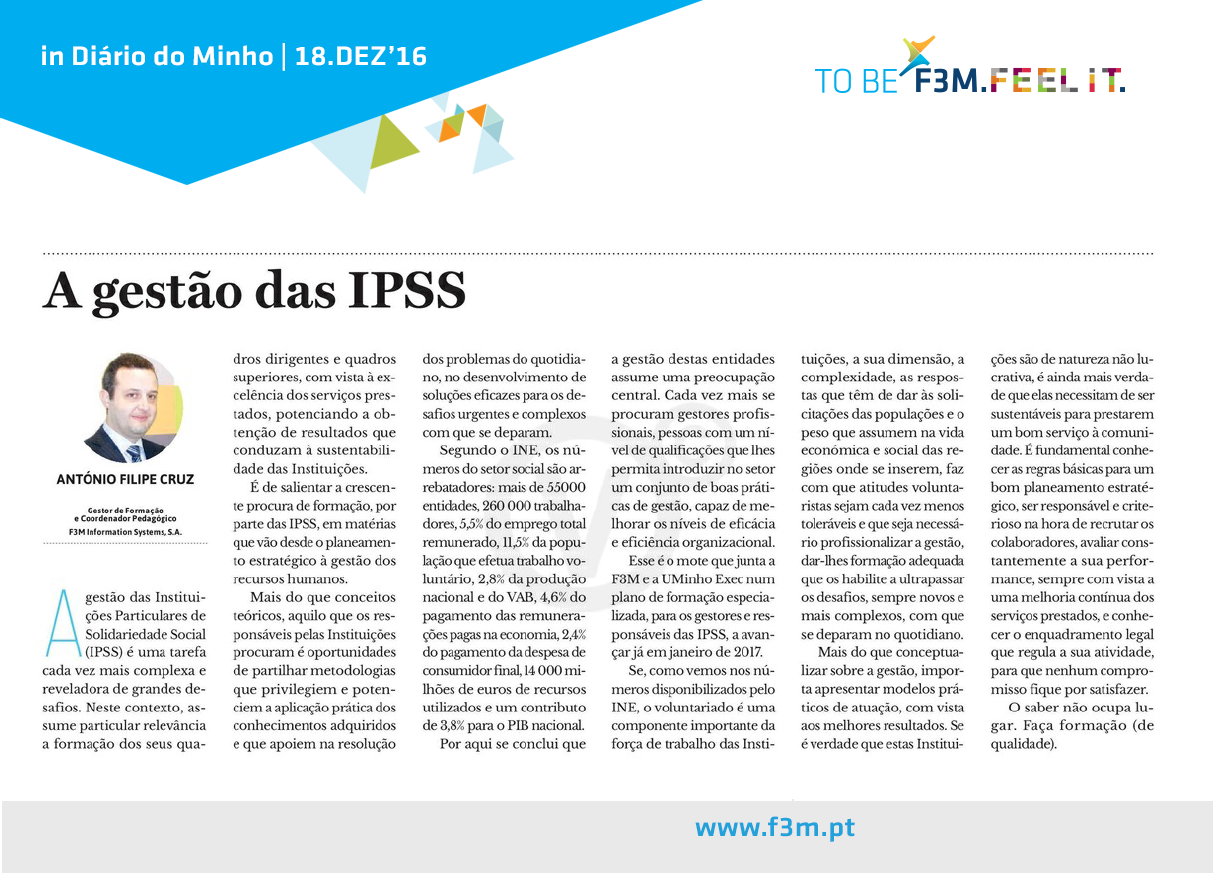 UMINHO e F3M vão lançar "Executive IPSS 2017" (JAN2017)