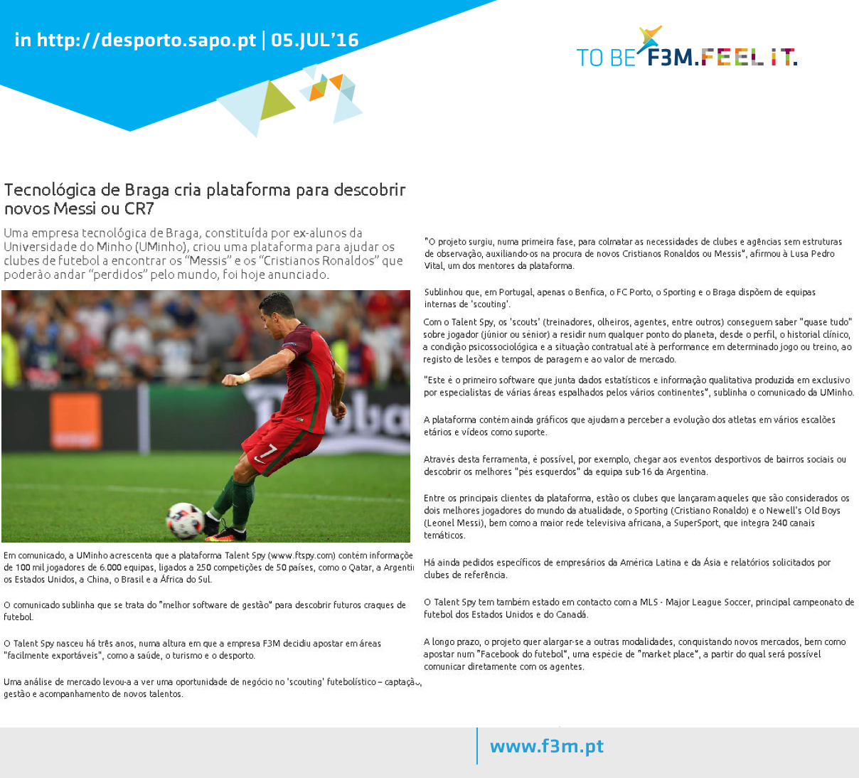 Tecnológica de Braga cria plataforma para descobrir novos Messi ou CR7 (JUL2016)