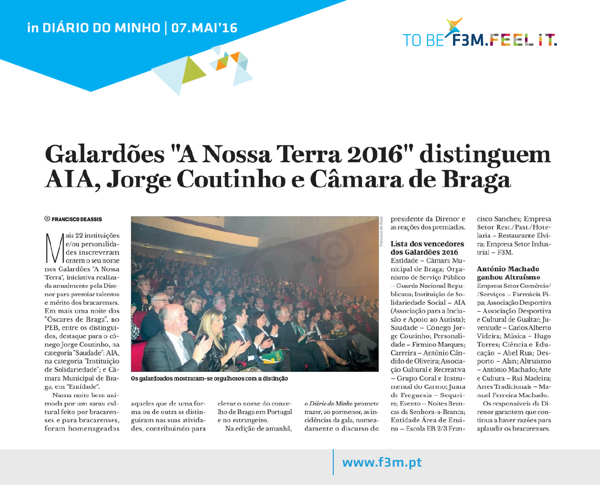 Galardões A NOSSA TERRA 2016 distinguem AIA, Jorge Coutinho e Câmara de Braga (MAI2016)