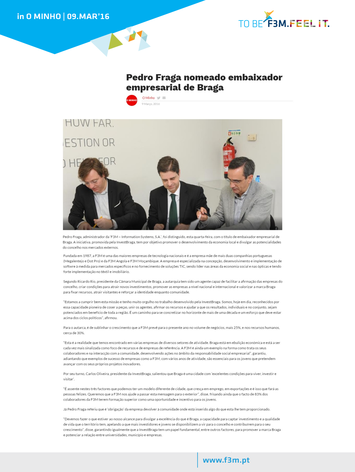 Pedro Fraga nomeado embaixador empresarial de Braga (MAR2016)