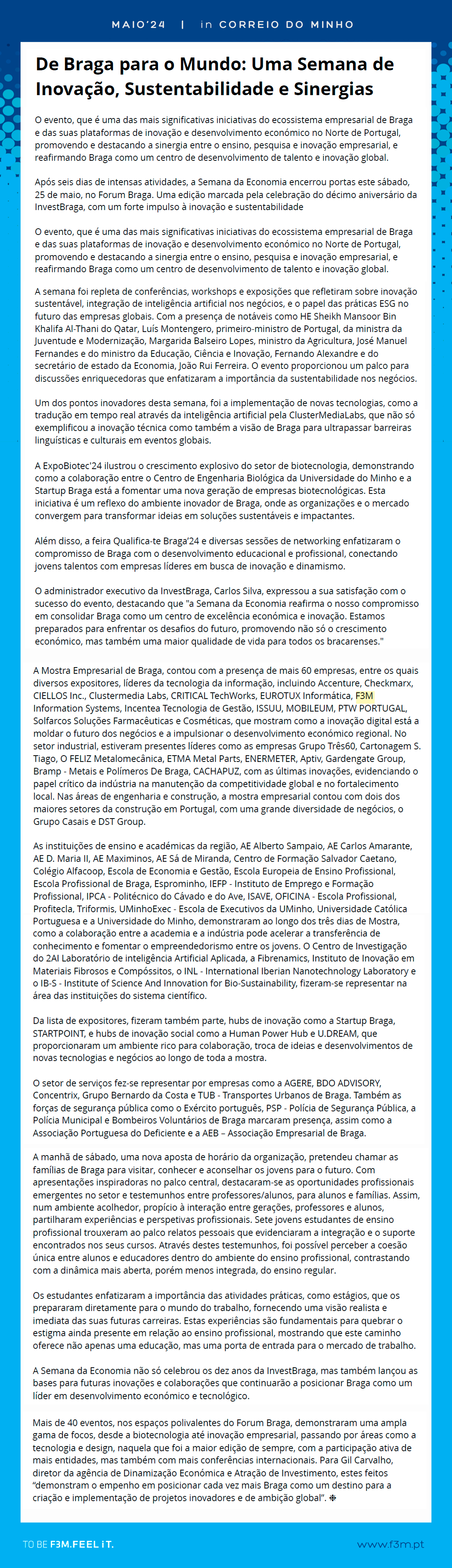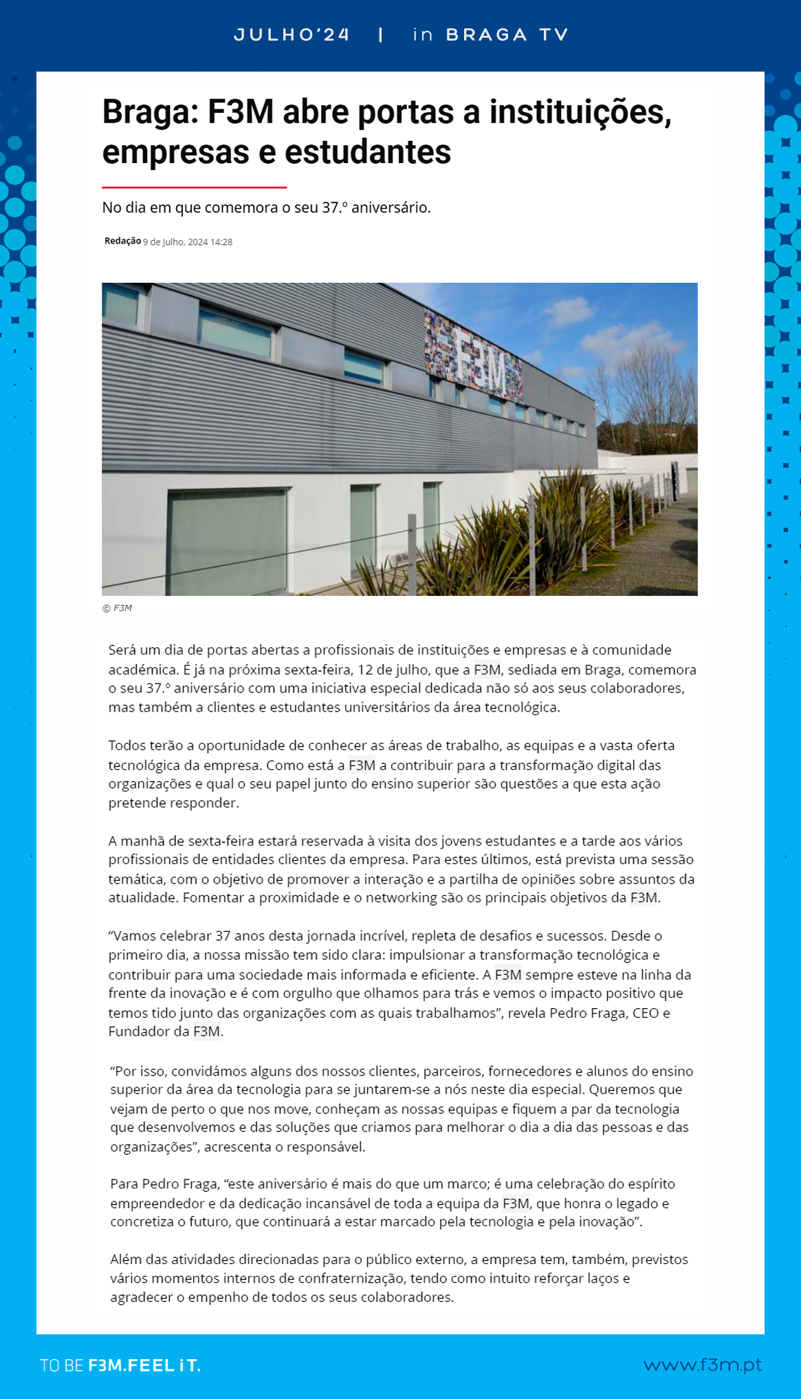 Braga: F3M abre portas a instituições, empresas e estudantes (JUL'24)