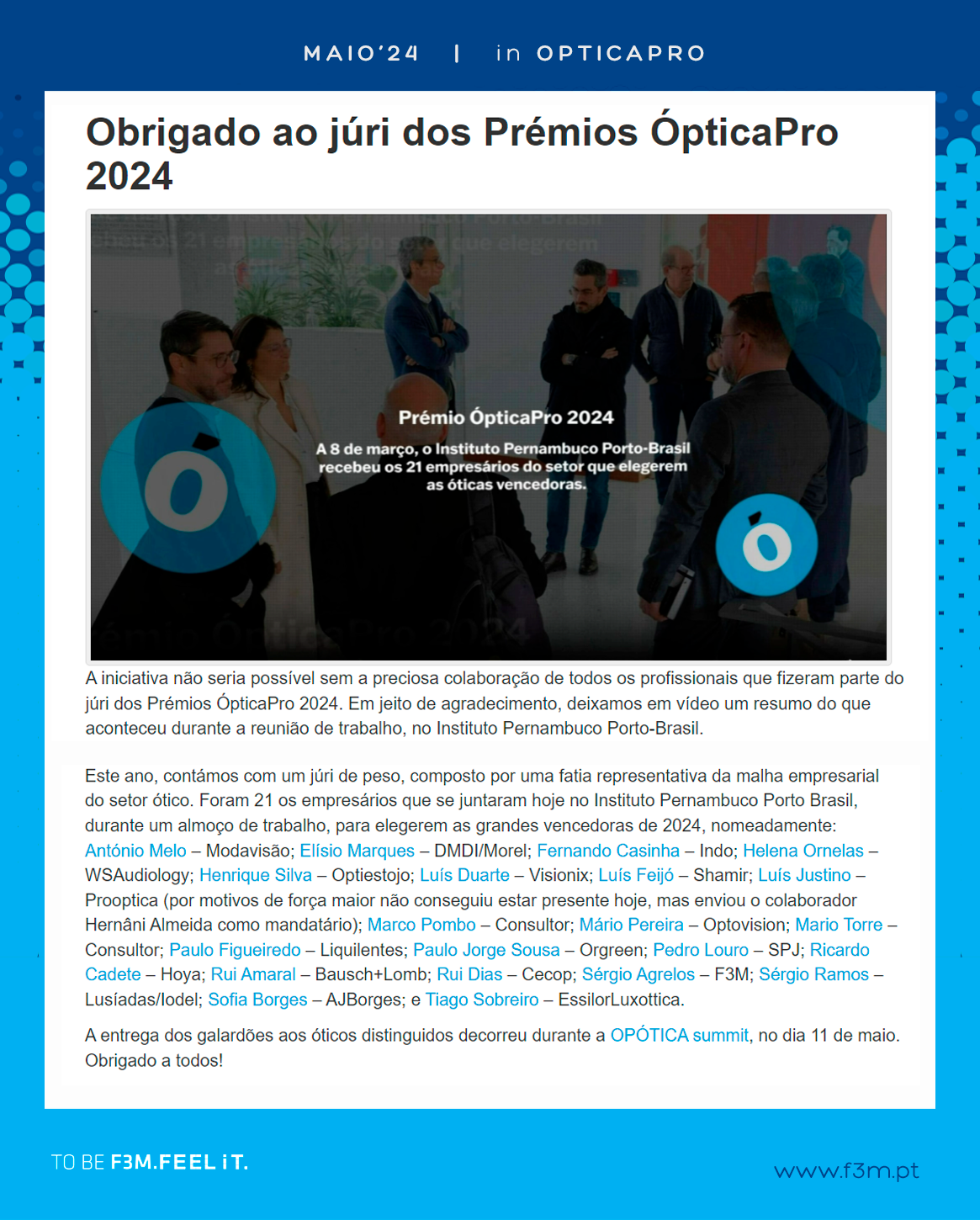 Obrigado ao júri dos Prémios ÓpticaPro 2024 (MAI'24)